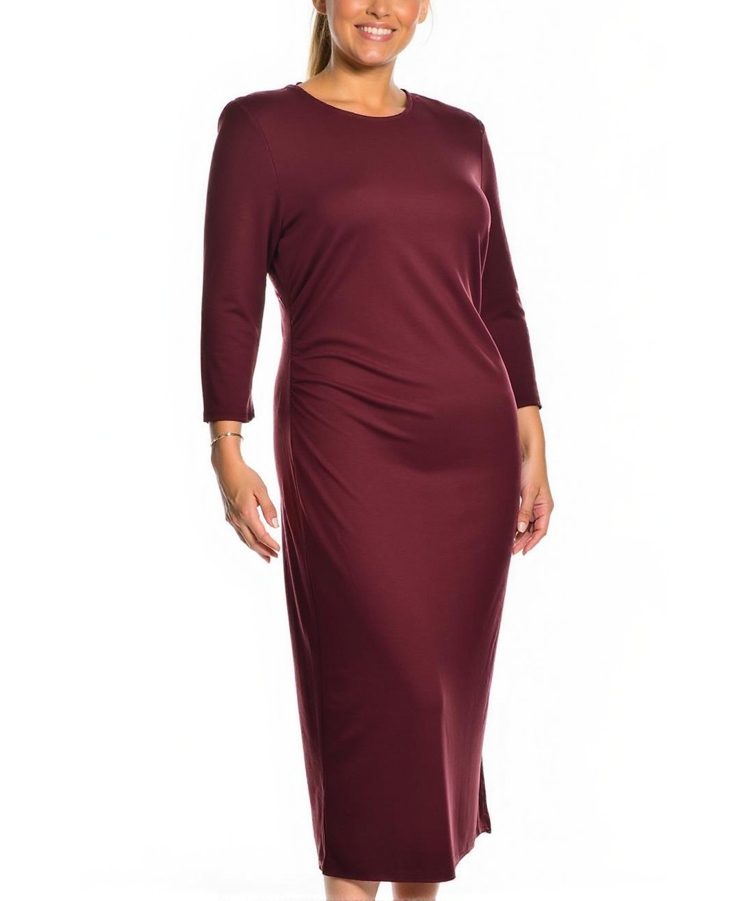 Елегантна рокля от вискоза в бургундско, с дължина миди и прилепнала линия. Три-четвърти ръкави, мека еластична материя, удобна за всеки ден и специални поводи. Лесна за поддръжка. Подходяща за сезон.