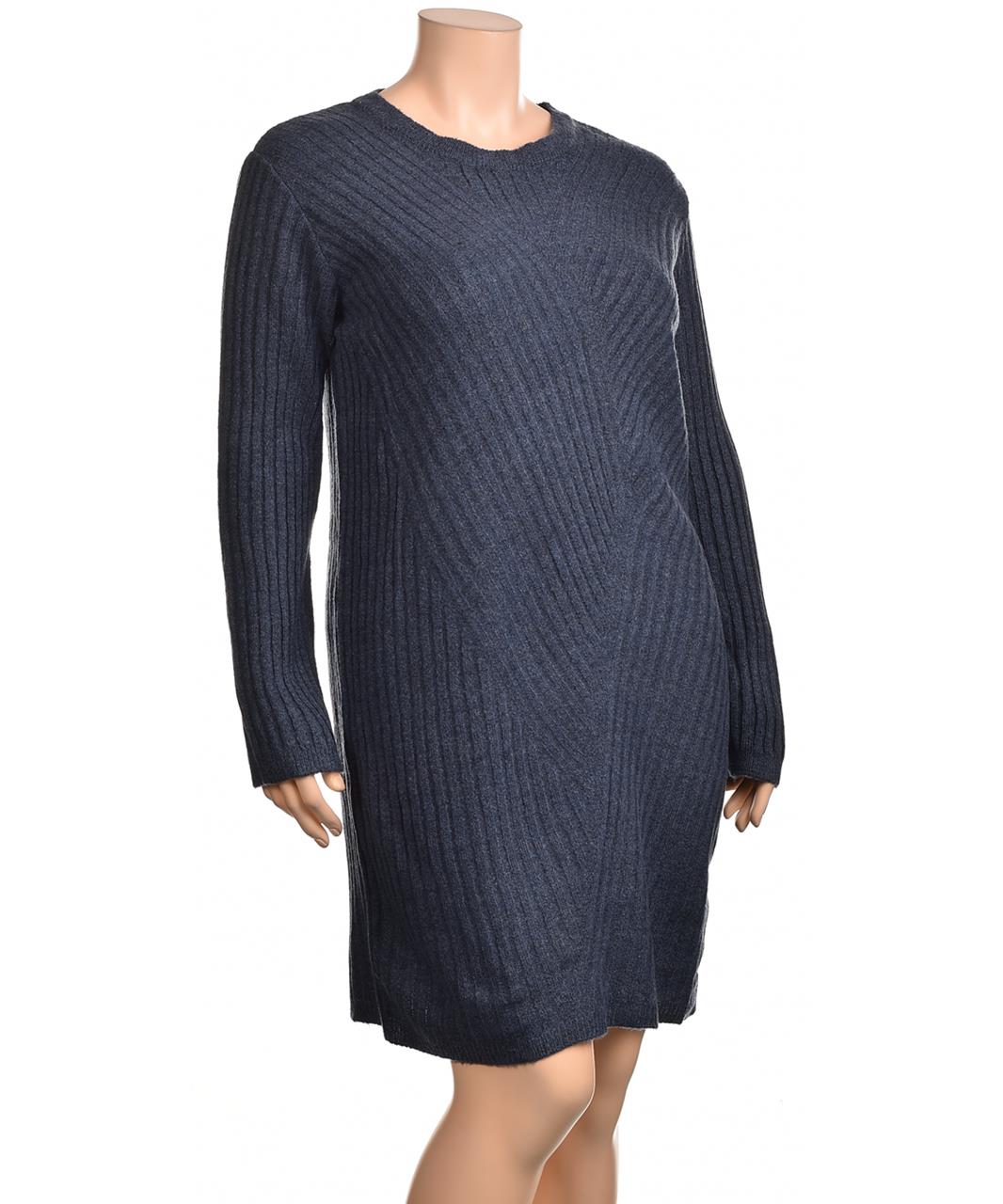 Тъмносиня плетена рокля с дълъг ръкав и права кройка. Рипсена текстура, мека и топла. Подходяща за ежедневно и офис носене през есен-зима. Стилна, удобна и практична. Перфектна за офисни и уютни уикенди.