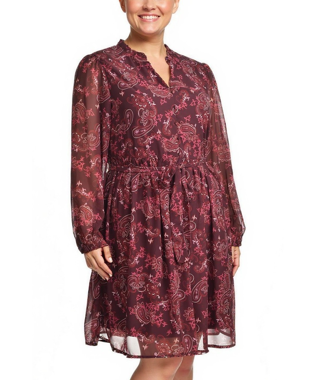 Бордо шифонена рокля с пейсли принт и V-образно деколте. Дълги прозрачни ръкави, подплата и колан на талията. Ефирна кройка до коляното, елегантна и удобна за всеки повод. Подходяща за всеки празник.