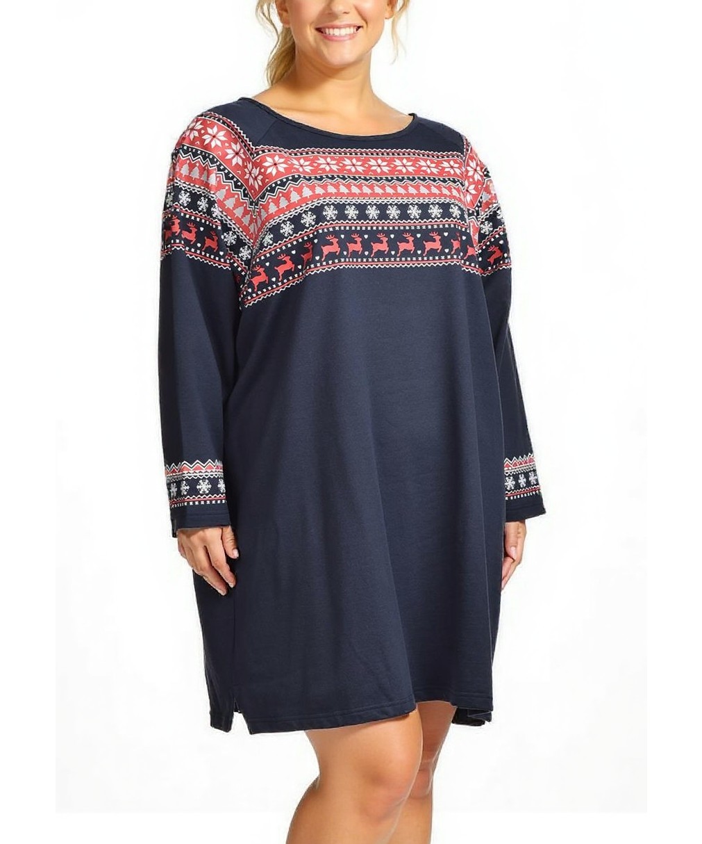Комфортна памучна рокля в тъмносиньо с норвежки десен на гърди и ръкави. Свободна кройка, дълъг ръкав и дължина до коляното — идеална за ежедневие и уют вкъщи. Мека и дишаща, перфектна за всеки ден. Уют.