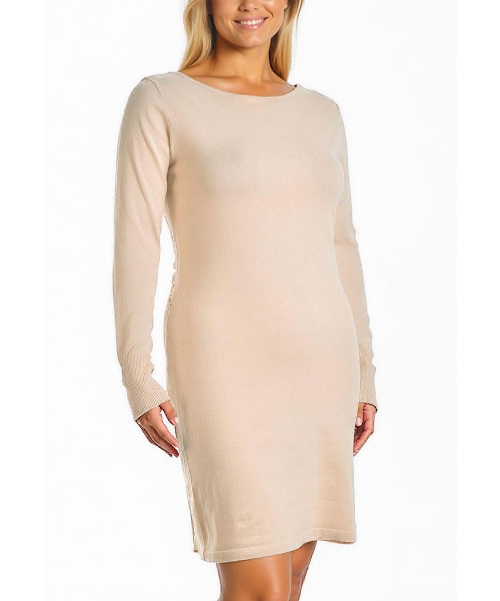 Елегантна памучна рокля в бежов цвят, с дълги ръкави и прав силует до коляното. Мека, дишаща и удобна, идеална за всеки ден или офис. Лека еластичност и лесна поддръжка. Подч. силует, стилен и финен.