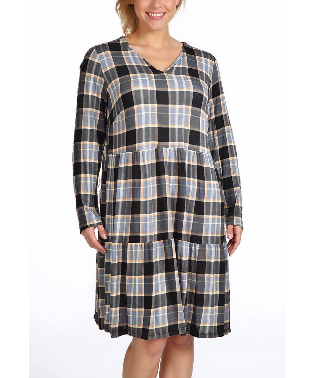 Свободна карирана рокля от мека вискоза с V-образно деколте, дълги ръкави и набор в талията. Двуетажно кроене с волани, комфортна и подходяща за ежедневие и по-ежедневни поводи. С мека материя, лесна грижа.