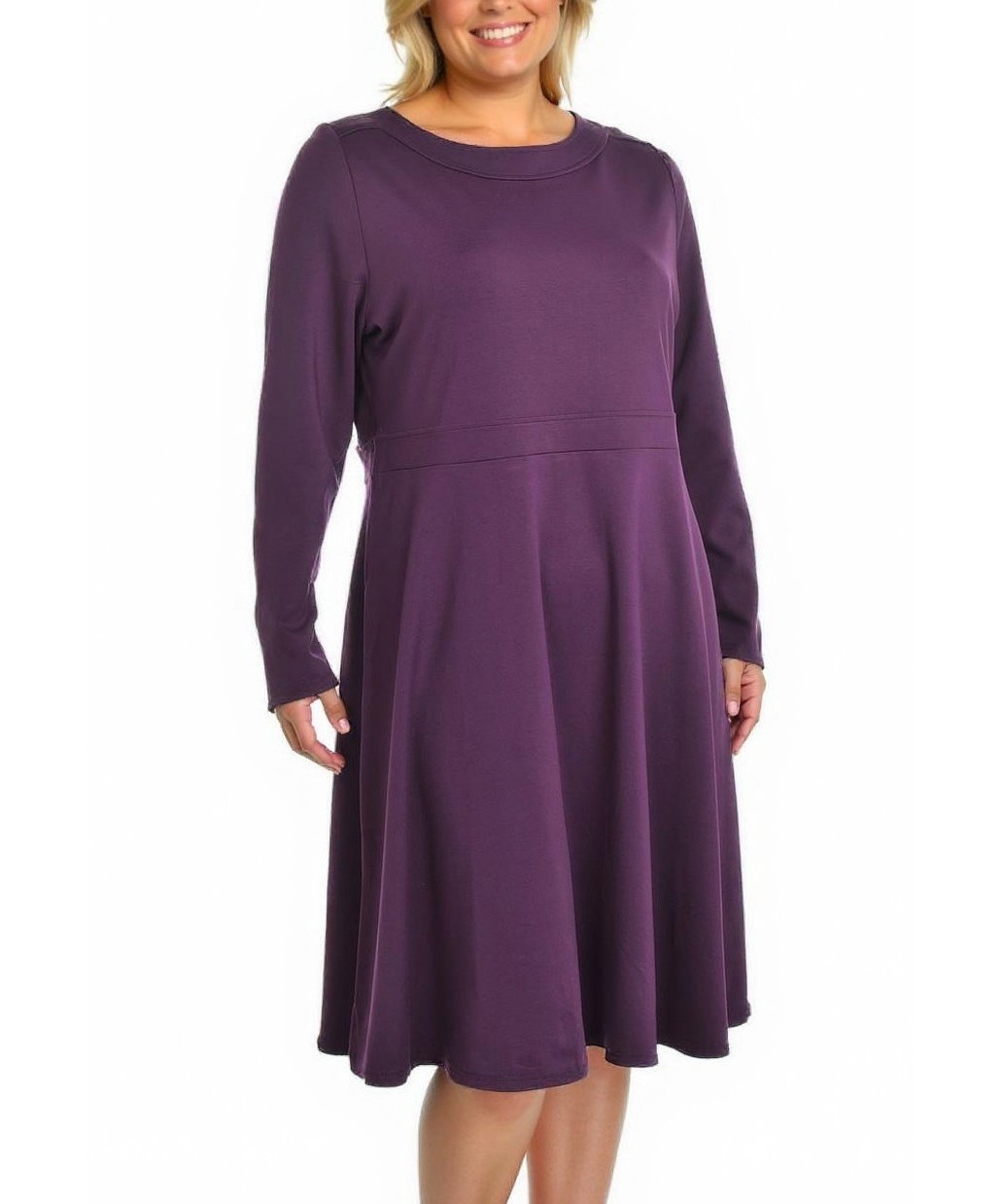 Лилава рокля с дълги ръкави и кръгло деколте, втален модел с А-линия. Мека, еластична материя, подчертана талия и плавен подгъв. Идеална за офис, ежедневие и по-официални поводи. Лесна за поддръжка.