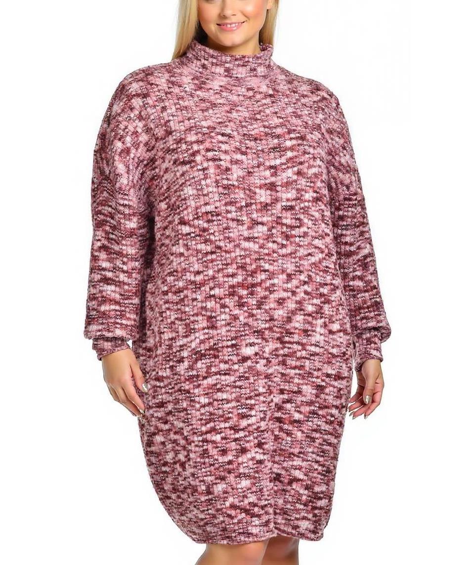 Дълга плетена рокля в меланжови розово-бордо нюанси, с висока поло яка и свободен, удължен силует. Топла и удобна, идеална за студените месеци и ежедневни аутфити. Стилен избор за офис и уикенд. Подходяща