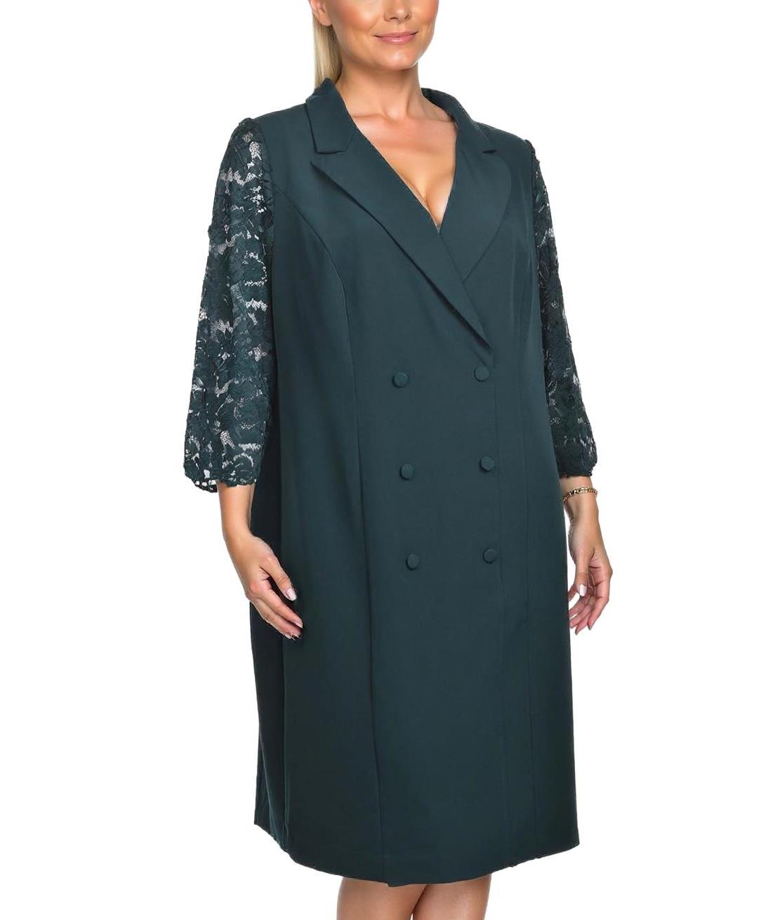 Елегантна тъмнозелена рокля-манто с двуредно закопчаване и ревери. Свободен силует до коляното, дантелени 3/4 ръкави, подходяща за официални и вечерни събития. Комфортна и стилна. Подходяща за всеки ден.