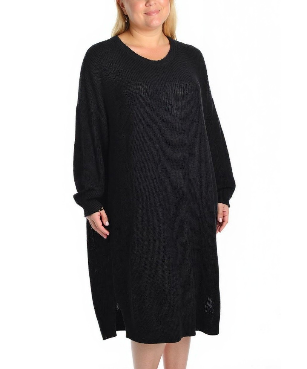 Черна памучна рокля в свободен силует, midi дължина и дълги ръкави. Мека, дишаща материя, идеална за ежедневие и комфортни визии. Подходяща за по-пълни фигури. Лесна поддръжка, без подплата. Подходяща