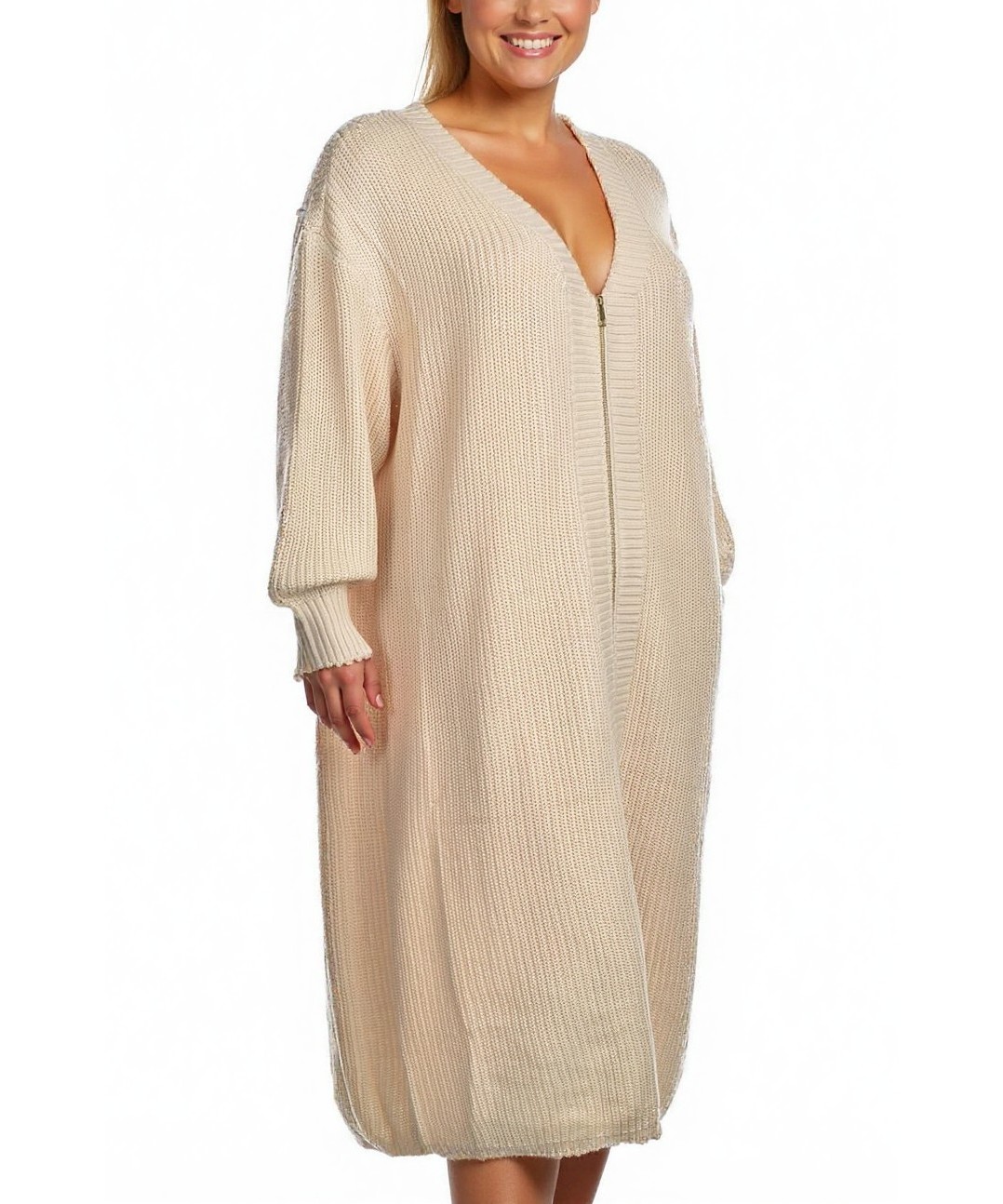 Памучна рокля в мек бежов нюанс, плетена текстура, свободен прав силует с V-деколте и дълги ръкави. Комфортна и дишаща, идеална за всекидневие и преходни сезони. Лесна поддръжка и устойчив материал....