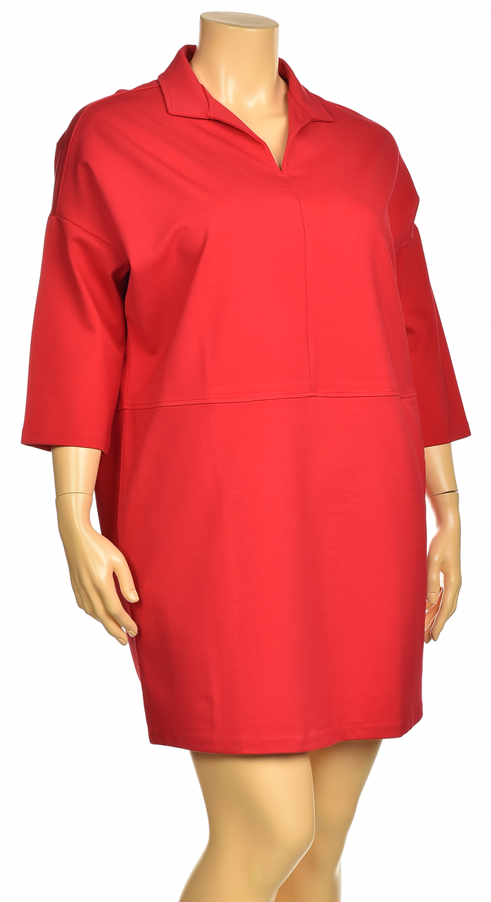 Червена рокля от вискоза с права кройка и дълги ръкави. Лекото деколте придава елегантност, като осигурява комфорт и стил. Идеална за ежедневни събития или делови срещи.