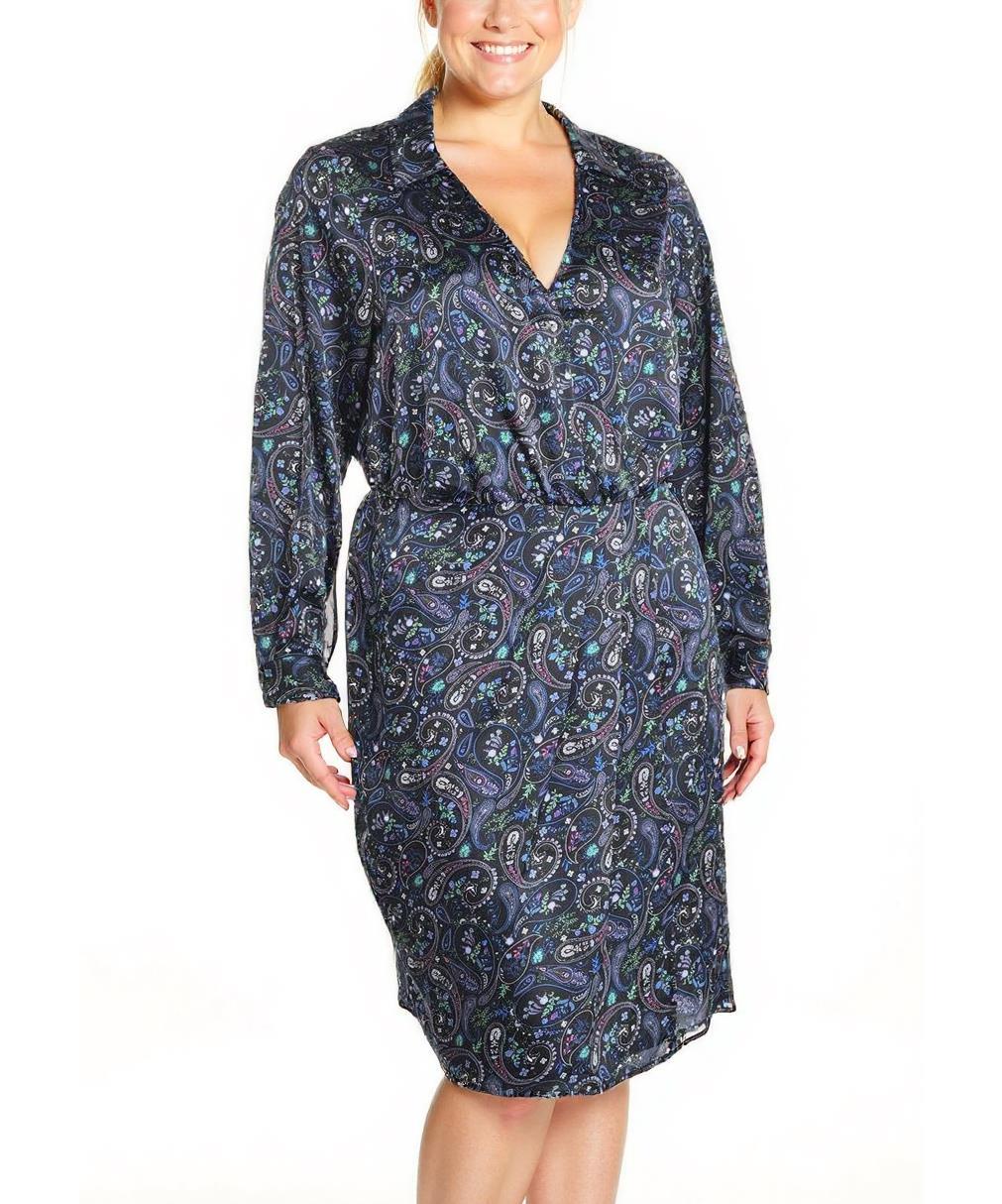 Сатенена рокля с мек блясък и изискан пейсли принт. Дълги ръкави, V-образно деколте и еластична талия за удобна кройка. Идеална за вечерни и официални поводи с елегантен силует. Подчертава женственост