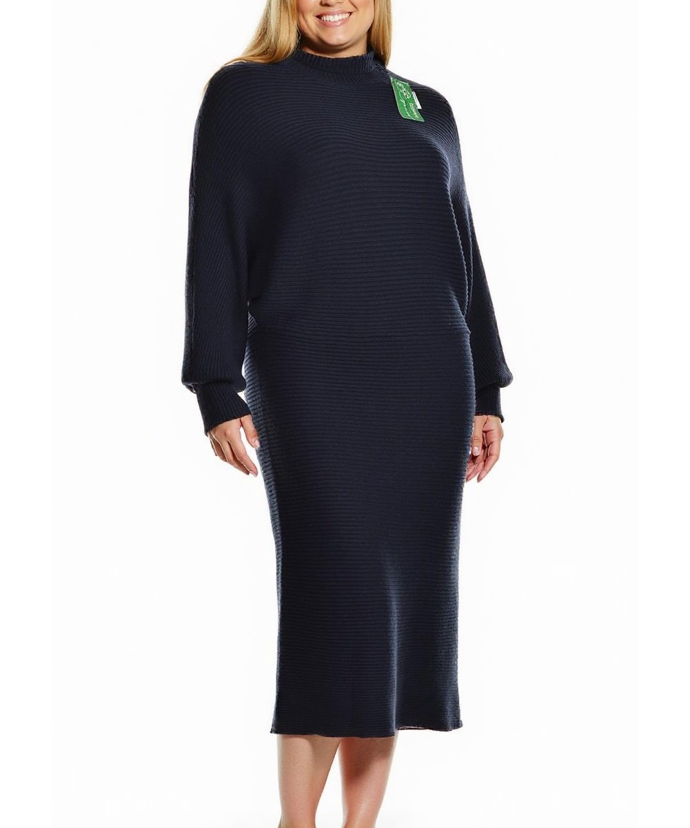 Елегантна рокля от вискоза в тъмносиньо. Мек и дишащ плат, права силуетна кройка до прасците, дълги ръкави и високо деколте. Практична за всеки ден или официални поводи, съчетава уют и стил. Подчертан