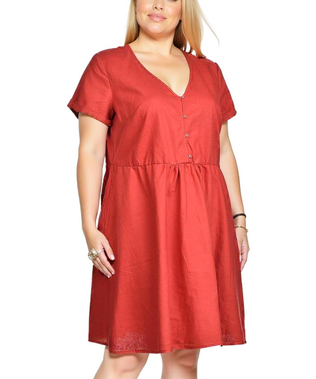 Рокля от ленена смес с къс ръкав и V-образно деколте, закопчаване с копчета отпред и свободна кройка. Изработена от висококачествени материали за комфорт и стил през топлите дни.