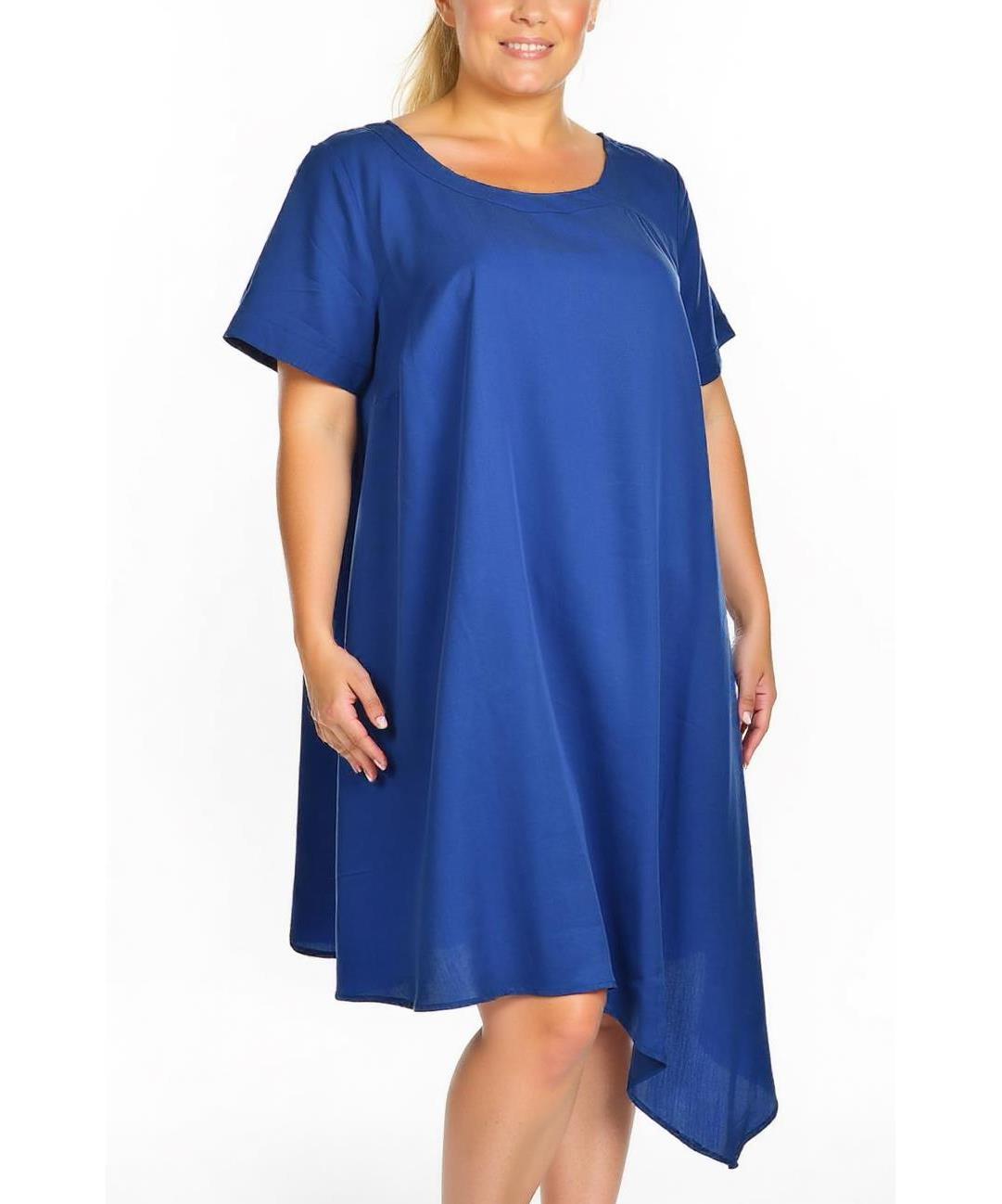 Елегантна рокля от лиоцел, отличаваща се с асиметрична кройка и къси ръкави, осигуряваща комфорт и стил. Подходяща за различни поводи, благодарение на меката и лека материя.