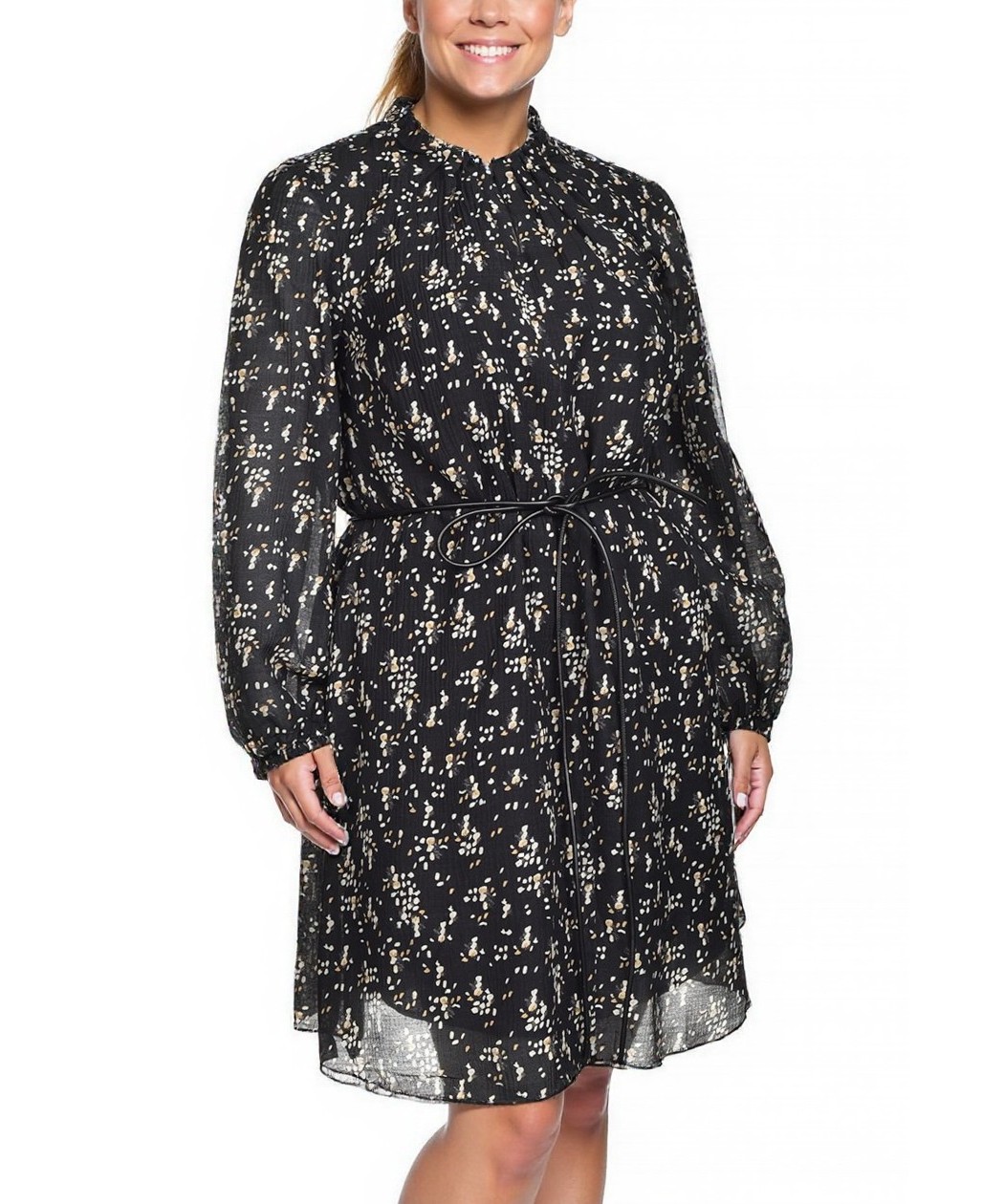 Рокля с флорален мотив от смес от вълна и коприна, произведена от марката КОПРИНА. Дълги ръкави с маншети, леко свободна кройка и декоративен колан на талията. Подходяща за елегантни поводи.