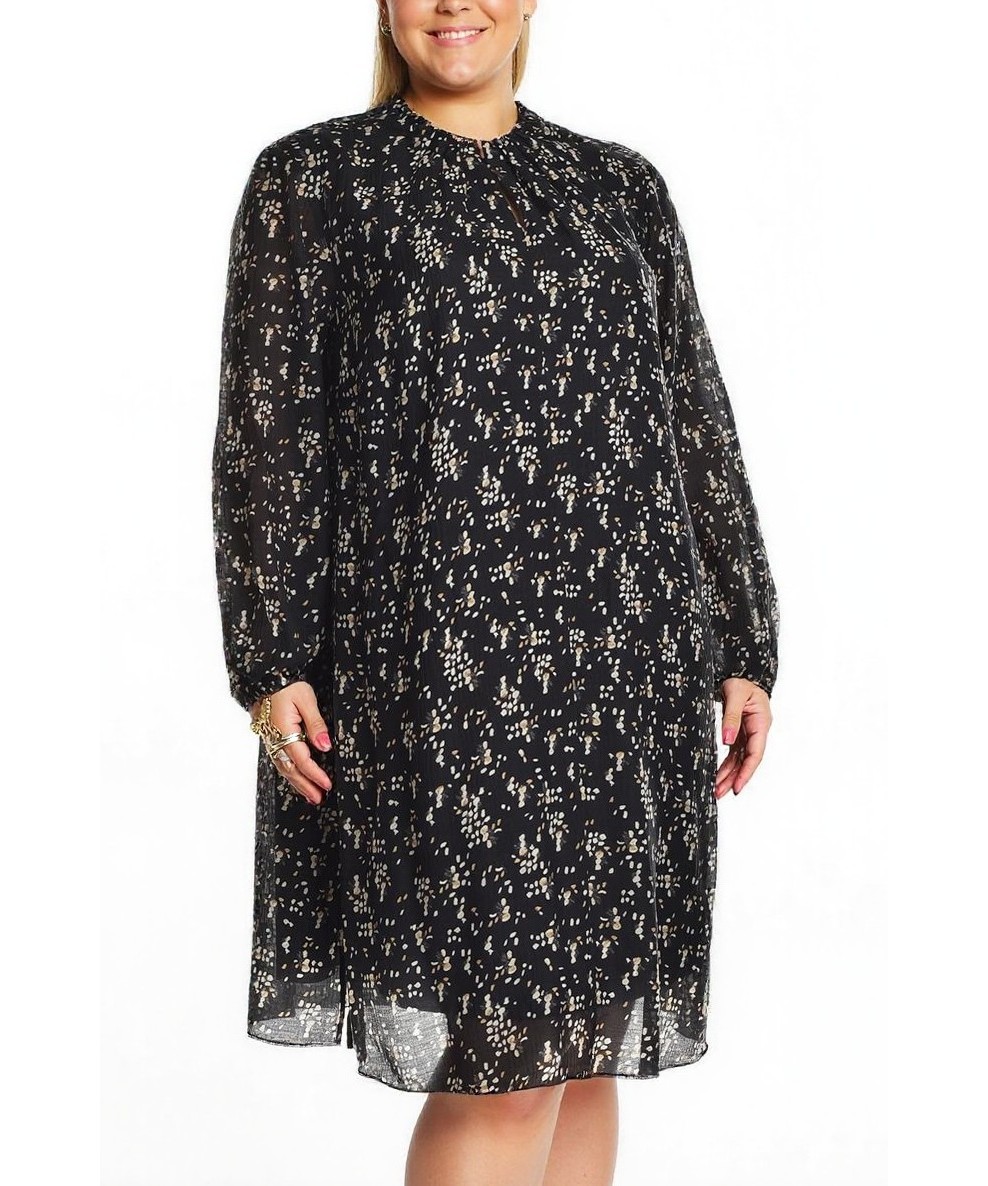 Елегантна рокля от смес вълна и коприна, ефирна и мека, с дискретен флорален десен, свободна кройка и дълги ръкави. Подходяща за всеки ден и по-официални поводи. Лека подплата, лесна поддръжка. Стилна