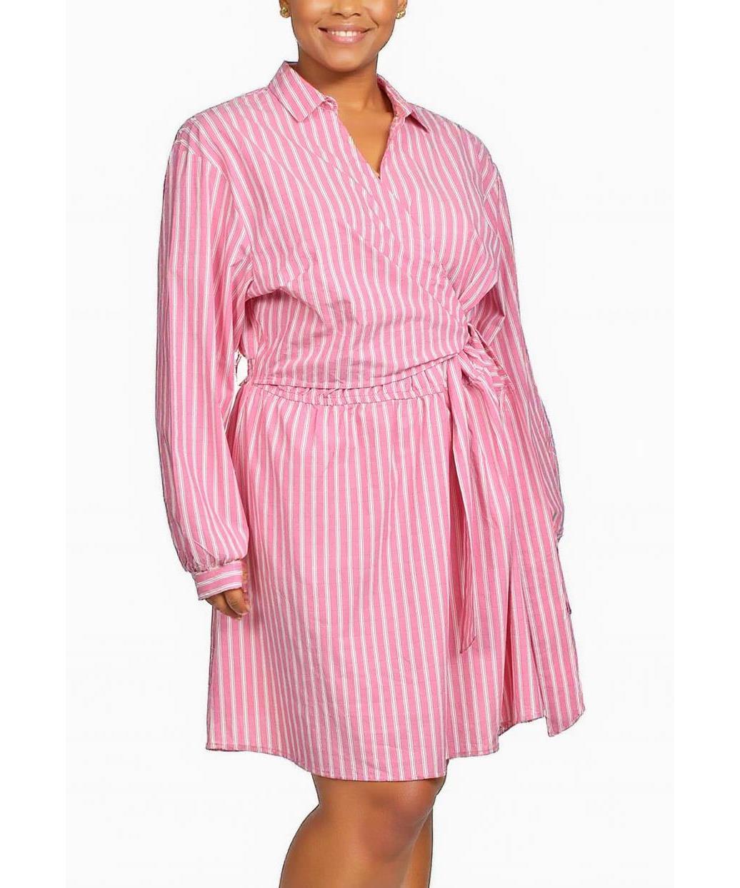 Рокля от памук с дълги ръкави и вертикални розови ивици. Разкроен силует и стилен дизайн, подходяща за ежедневни или по-специални поводи. Отличава се с комфорт и модерен вид.