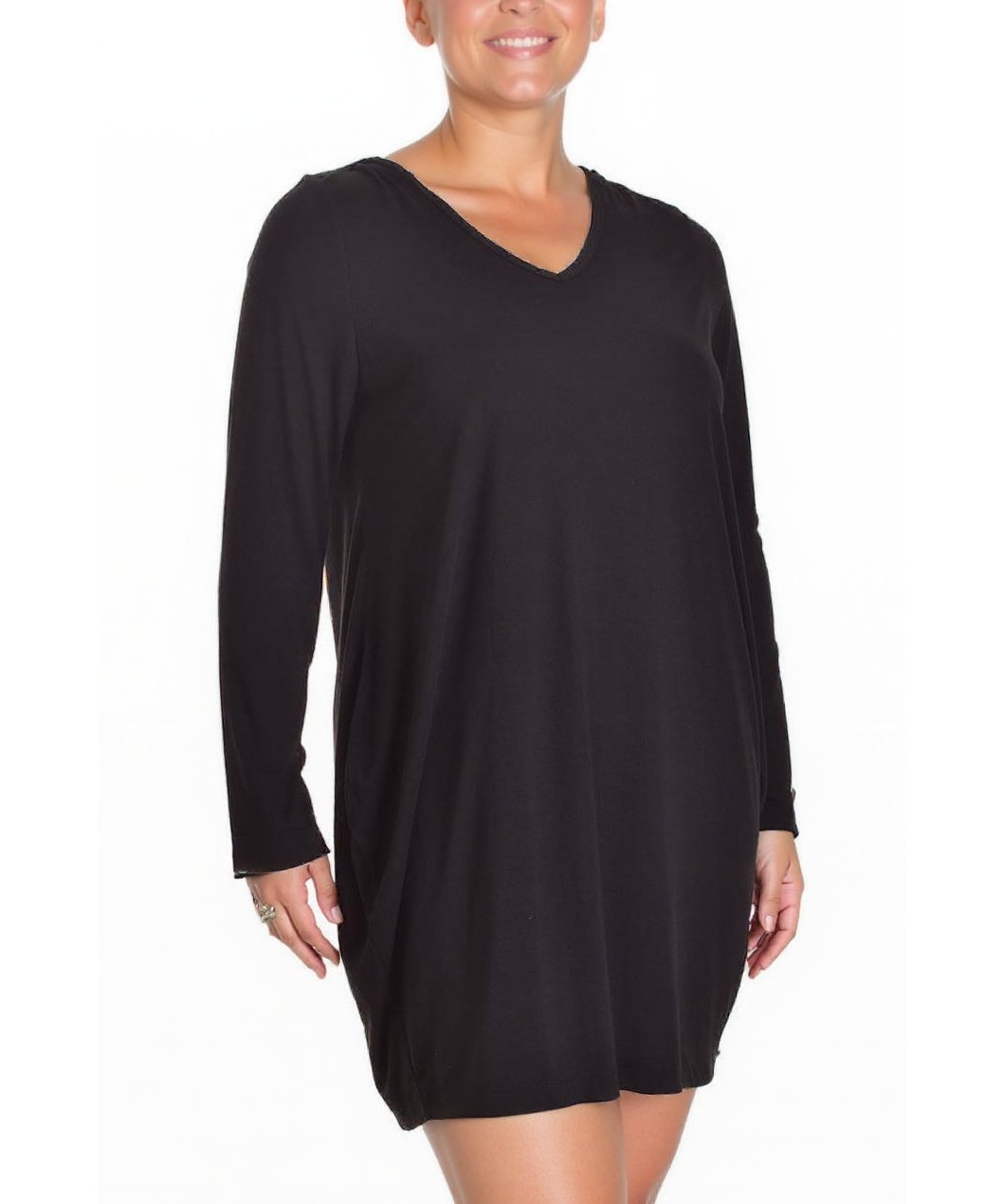 Елегантна рокля от вискоза в класическо черно, с V-образно деколте и дълъг ръкав. Свободна кройка, мека и дишаща материя за ежедневен и офис стил. Лесна поддръжка. Подходяща за всеки гардероб. Стилен.