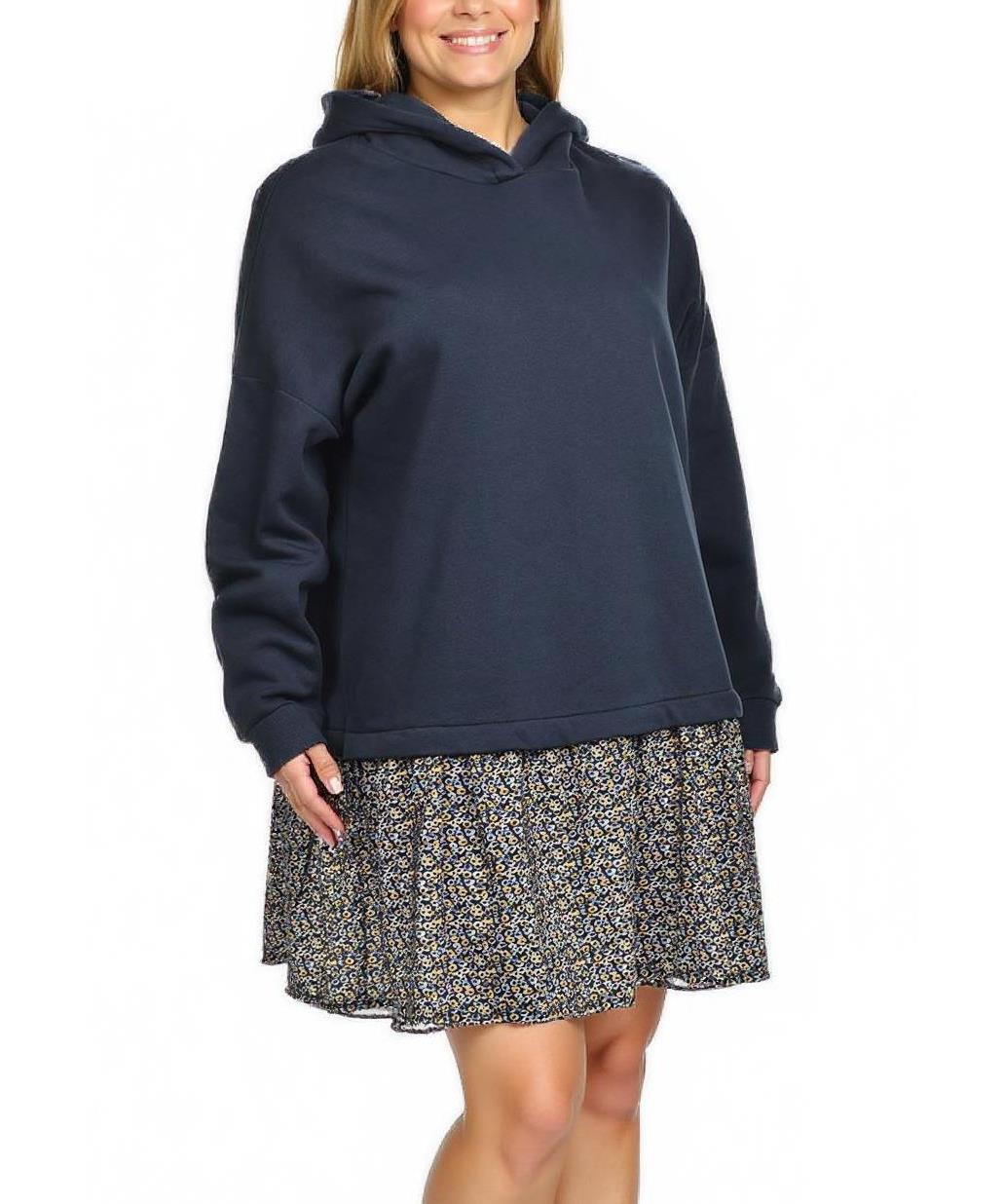 Памучна рокля с качулка и свободна долна част с фин цветен принт. Мека, приятна на допир и дишаща материя, идеална за ежедневие и комфортни визии. Лесна за пране и поддръжка. Подходяща за всяка възраст.
