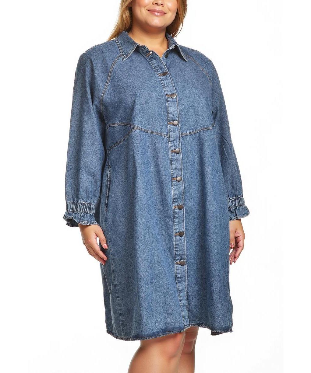 Стилна памучна рокля-туника в деним ефект, риза с копчета, яка и дълъг ръкав с ластик. Свободна, комфортна кройка, идеална за ежедневие и преходни сезони. Лесна за поддръжка, комбинира се елегантно и.