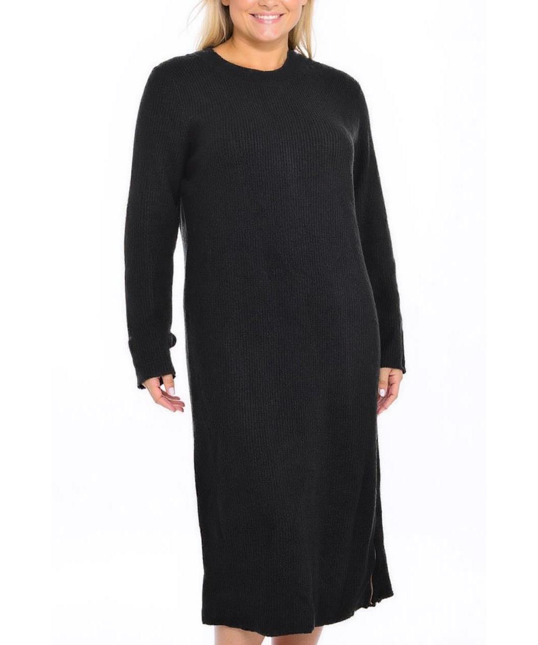 Черна плетена рокля със свободна кройка, дълги ръкави и класическо деколте. Дължина до прасците с дискретен разрез встрани. Удобна, топла и стилна за ежедневие и по-официални поводи. Стилна и топла.