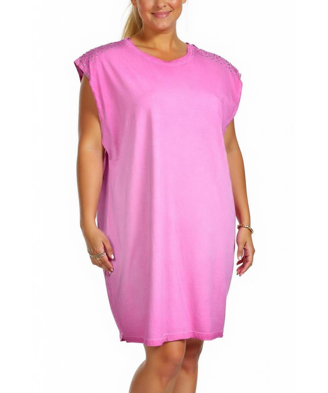 Описание на продукта: Тази розова рокля е изработена от мек памук, което я прави идеална за ежедневна употреба. С декорация на раменете и свободна кройка за комфорт и стил. Подходяща за всеки повод.