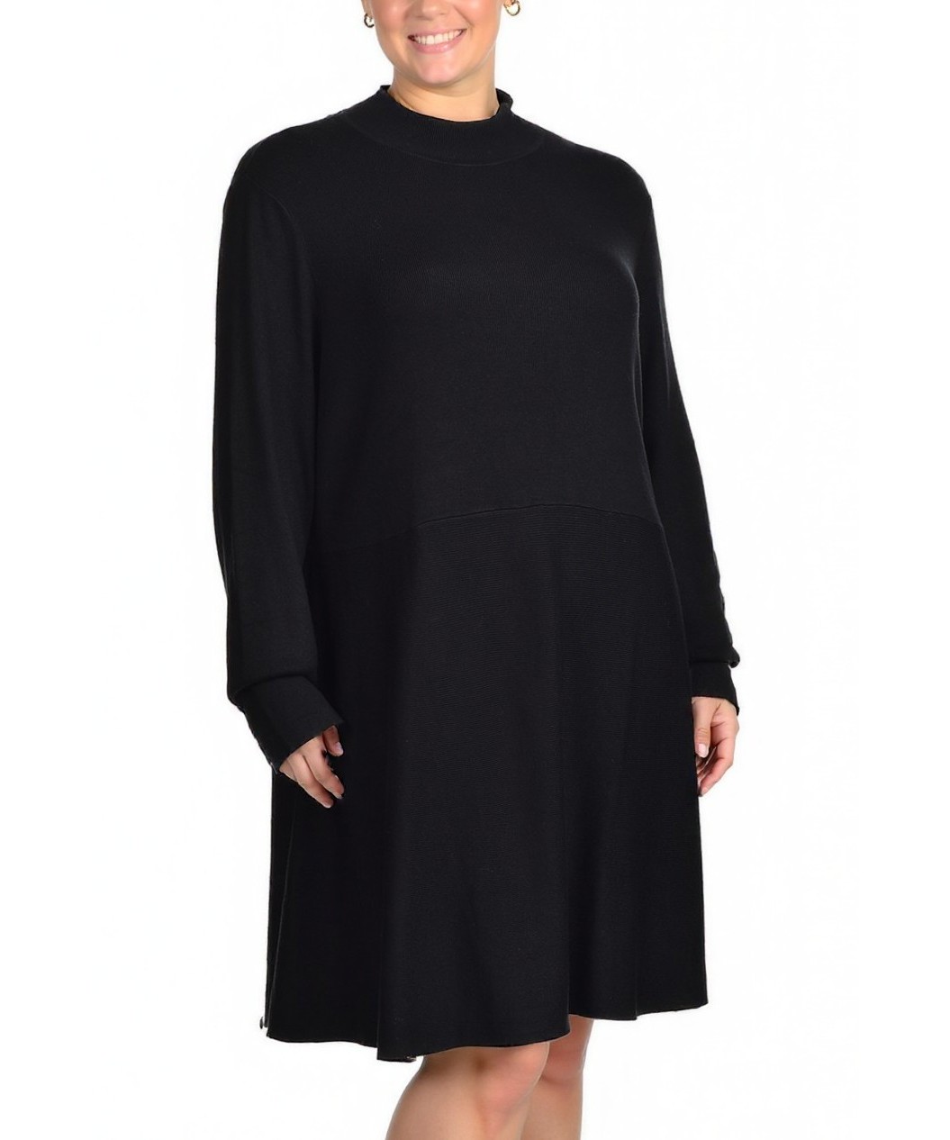 Черна рокля от вискоза с кръгло деколте и дълги ръкави. Свободен, мек силует до коляното. Комфортна и елегантна, подходяща за всеки ден, работа и вечерни изяви. Лесна за комбиниране и пътувания. Удобна