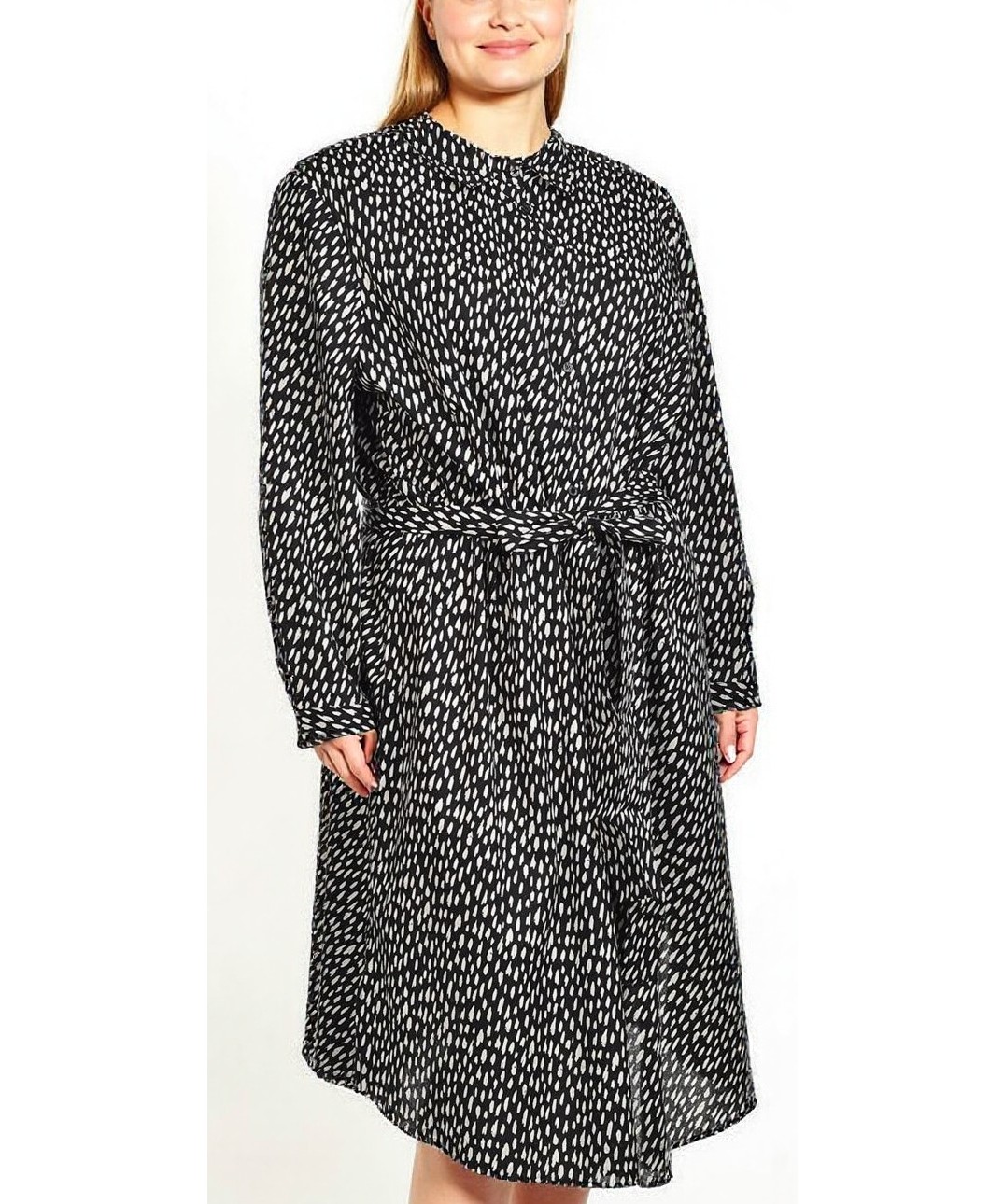 Елегантна рокля от мек памук с интересен черно-бял принт. Дълги ръкави и колан за удобство и стил. Подходяща за ежедневни и официални поводи, осигурява комфорт през целия ден.