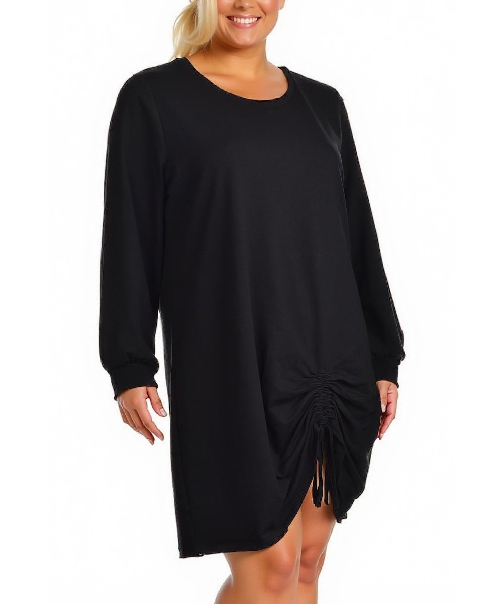 Черна рокля от мек памук, с дълги ръкави и свободна кройка. Детайл с връзки и събиране отпред придава модерен акцент. Удобна, дишаща и подходяща за ежедневие и релаксирани визии Подходяща за всеки ден