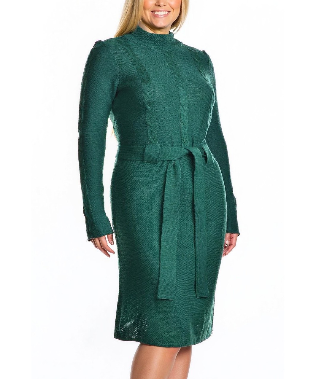 Елегантна памучна плетена рокля в дълбоко зелено, с висока яка, дълги ръкави и декоративни оплетки отпред. Прав силует с колан за подчертана талия, midi дължина за ежедневен стил. Подходяща за всеки