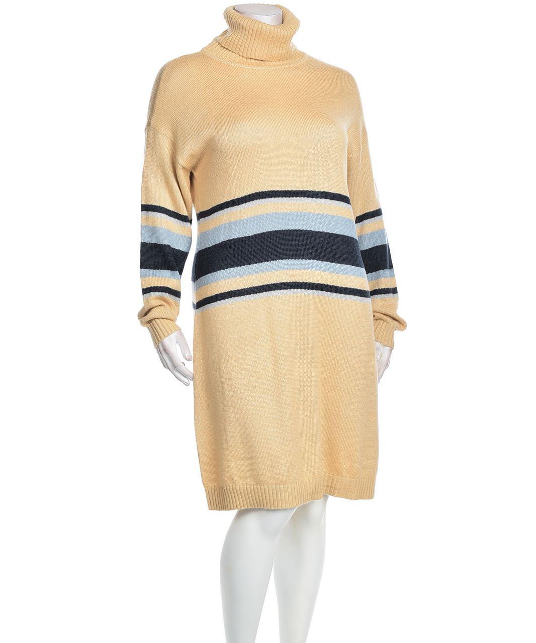 Памучна рокля с висока поло яка и свободна линия, дълги ръкави и релефни маншети. Хоризонтални раета в тъмносиньо и светлосиньо придават стил. Удобна, мека и подходяща за всеки ден. Стилна и топла. XL