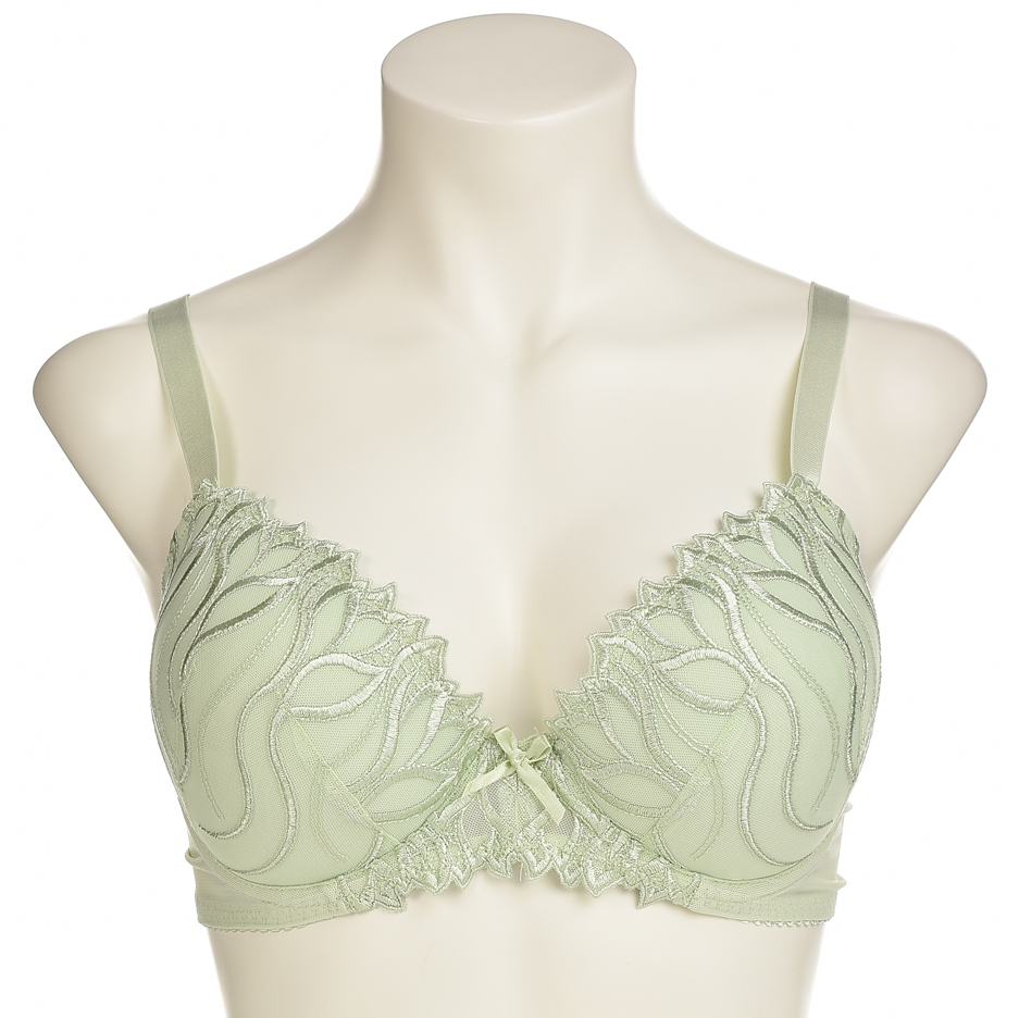 Двукомплект изискани дамски сутиени в светлозелено с омекотени чашки, метална подплата и фина дантела. Регулируеми презрамки, закопчаване на три нива. Удобство, елегантност и перфектна поддръжка. 2бр.
