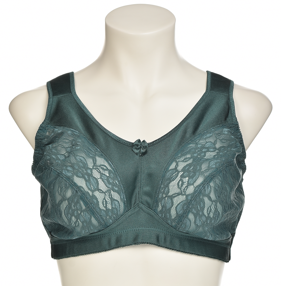 Комплект от 2 меки сутиена в елегантен изумруден цвят с дантелени чашки и широки подплатени презрамки. Осигуряват отлична поддръжка, комфорт през целия ден и дискретна визия под дрехите. Без банели. XL