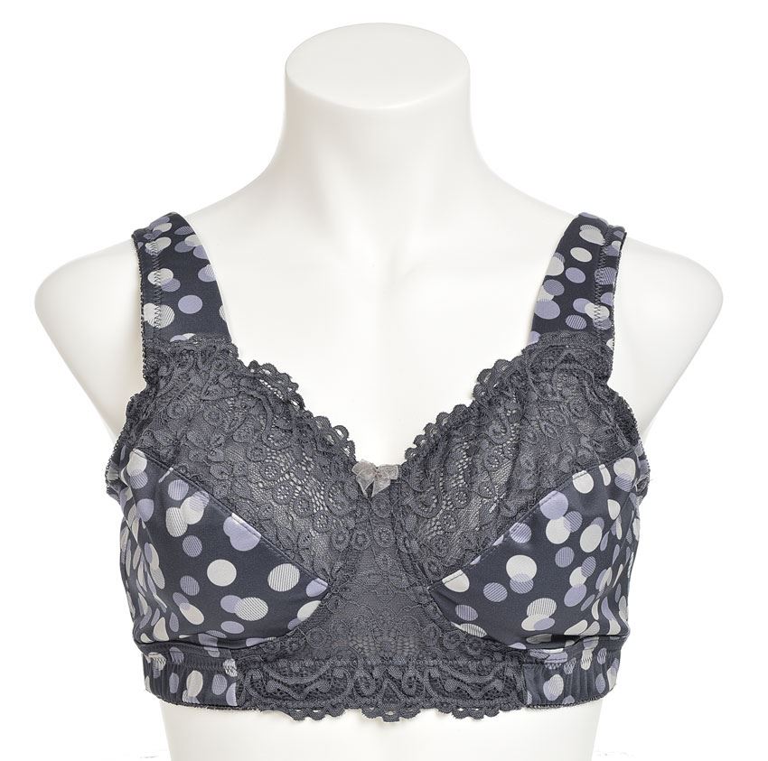 Сутиен без банели, мек и удобен, с дантела и ефектен десен на точки. Широки подплатени презрамки и подсилена долна част осигуряват комфортна, стабилна и дишаща опора за всеки ден. Лесен за поддръжка.