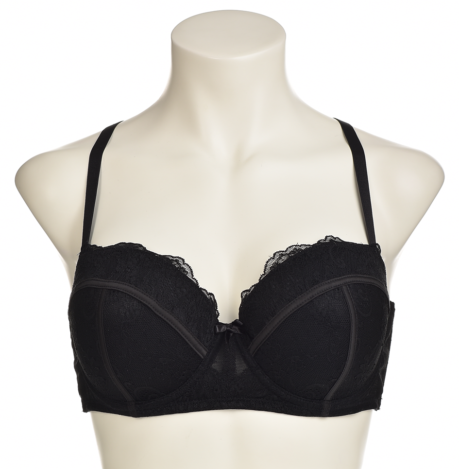 Елегантен черен дантелен сутиен с оформени подплатени чашки, банели и тънки регулиращи се презрамки. Подплатата осигурява комфорт и изящна линия под дрехите. Идеален избор за всеки ден и поводи. S-XL.