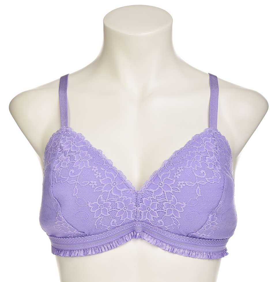 Дантелен сутиен в лилаво с меки чашки без банели, регулируеми тънки презрамки и фина къдрица под бюста. Комфортен и елегантен модел, подходящ за всекидневно носене и специални поводи.