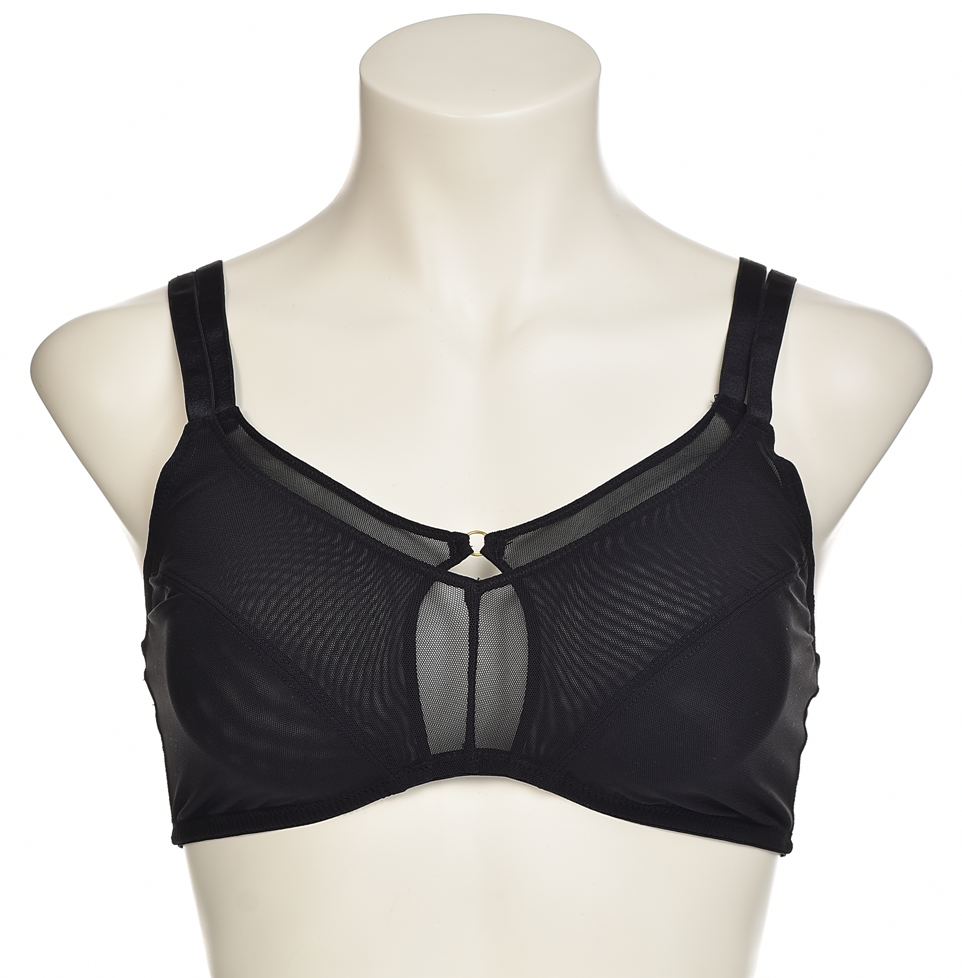 Елегантен черен сутиен с меки чашки и дишащи мрежести вложки. Широки регулируеми презрамки и подсилена подгръдна лента за комфортна поддръжка и ежедневна употреба с гладка линия под дрехите. С фина сатенка.