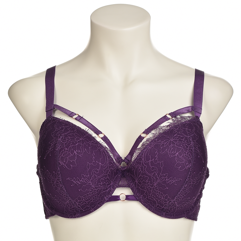 Елегантен лилав сутиен с подплата и банели, дантела и декоративни презрамки. Регулируеми презрамки и закопчаване на гърба. Комфортна форма и подкрепа за всеки ден и специални поводи. Стилен избор!100%