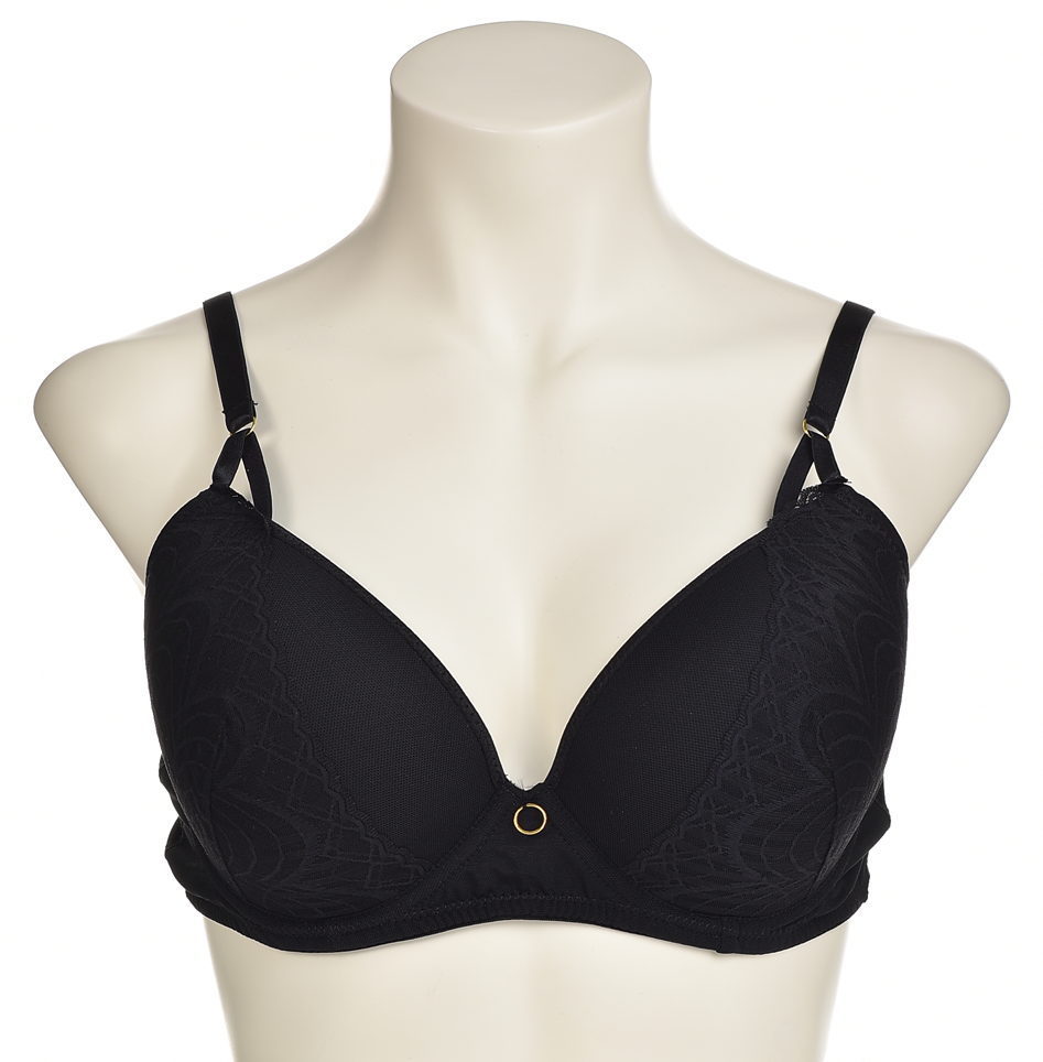 Елегантен черен сутиен с оформящи чашки и лека подплата, фина бродерия по страните, регулируеми презрамки и златист декоративен пръстен в центъра. Удобен, подходящ за всеки ден. Подходящ за всеки стил