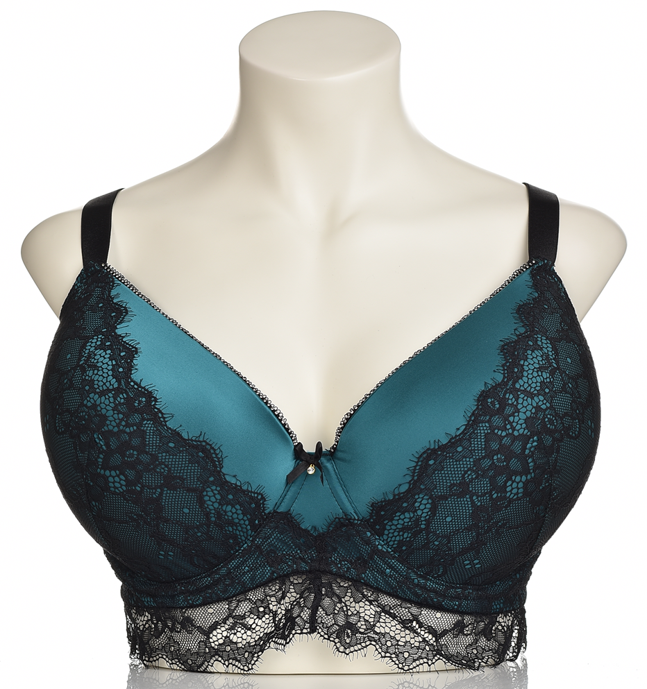Елегантен тюркоазено-черен сутиен с меки чашки, подплънки и красива дантелена декорация. Осигурява отлична форма и комфорт, регулируеми презрамки и фина централна панделка с камъче. Подходящ всеки ден!