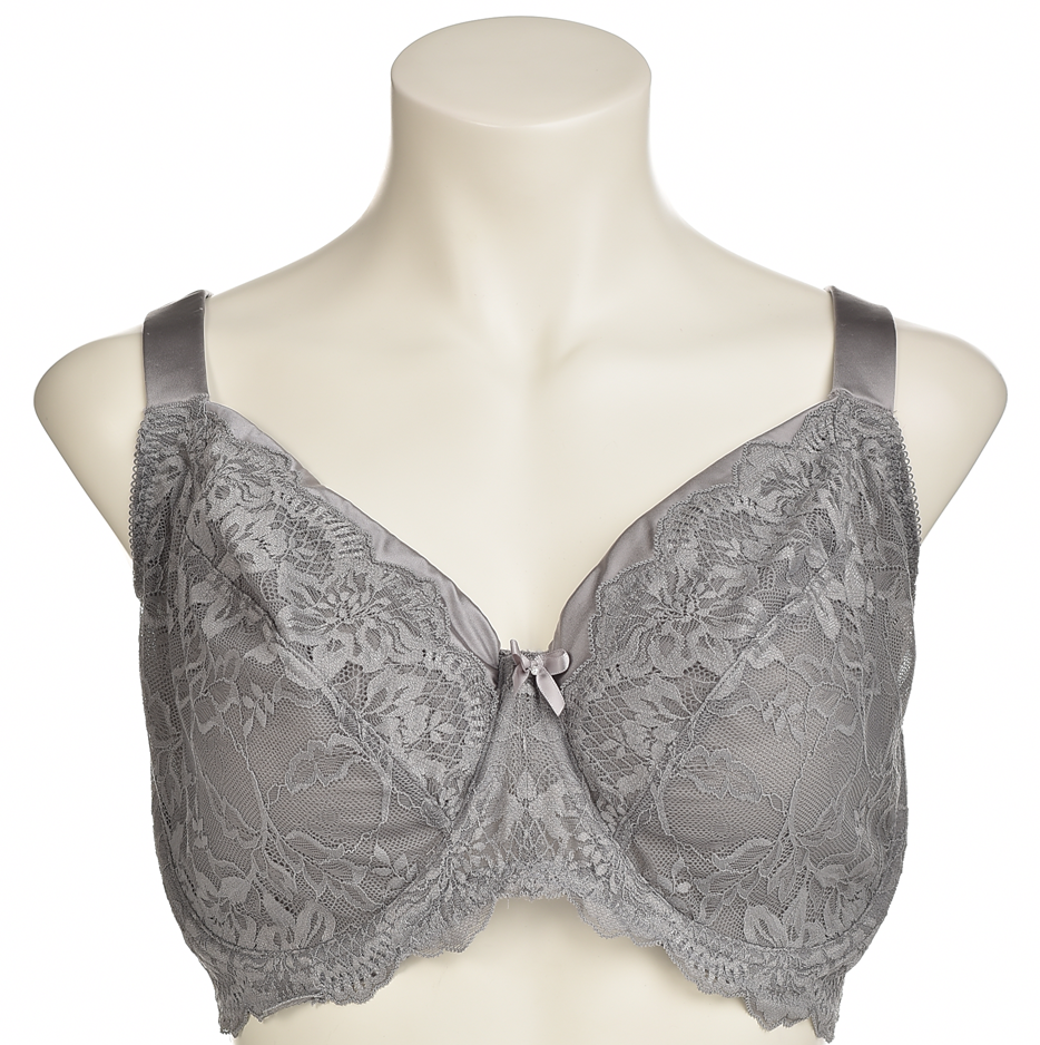 Сиво дантелено сутиен с оформени чашки и банели за отлична подкрепа. Широки регулируеми презрамки, фина декоративна панделка отпред и удобна, елегантна конструкция за ежедневно носене. Много мек и удобен.