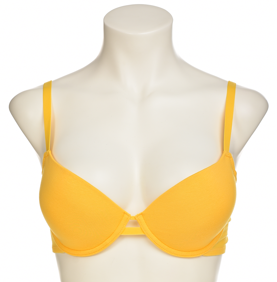 Памучен сутиен в жълт цвят с оформени чашки и тънки, регулируеми презрамки. Мек, дишащ материал за целодневен комфорт, сигурна подкрепа и лесна поддръжка. Идеален за всеки ден. Модерен и практичен!!