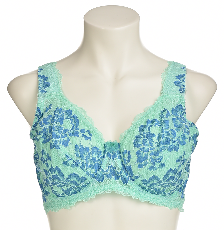 Елегантен дантелен сутиен в ментово и синьо с флорален мотив. Подплатени U-ножици и банел за оформяне и подкрепа, широки регулируеми презрамки и мека подплата за комфорт през целия ден. Идеален избор.