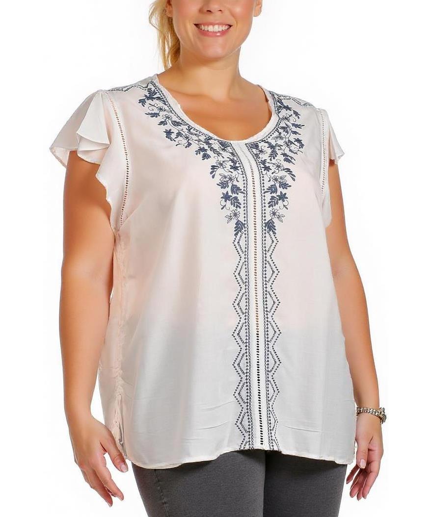 Дамска блуза от вискоза с къси ръкави, декорирана с изискани бродерии в предната част. Лека и удобна, подходяща за ежедневието. Нежното съчетание на материали осигурява комфорт и стил.