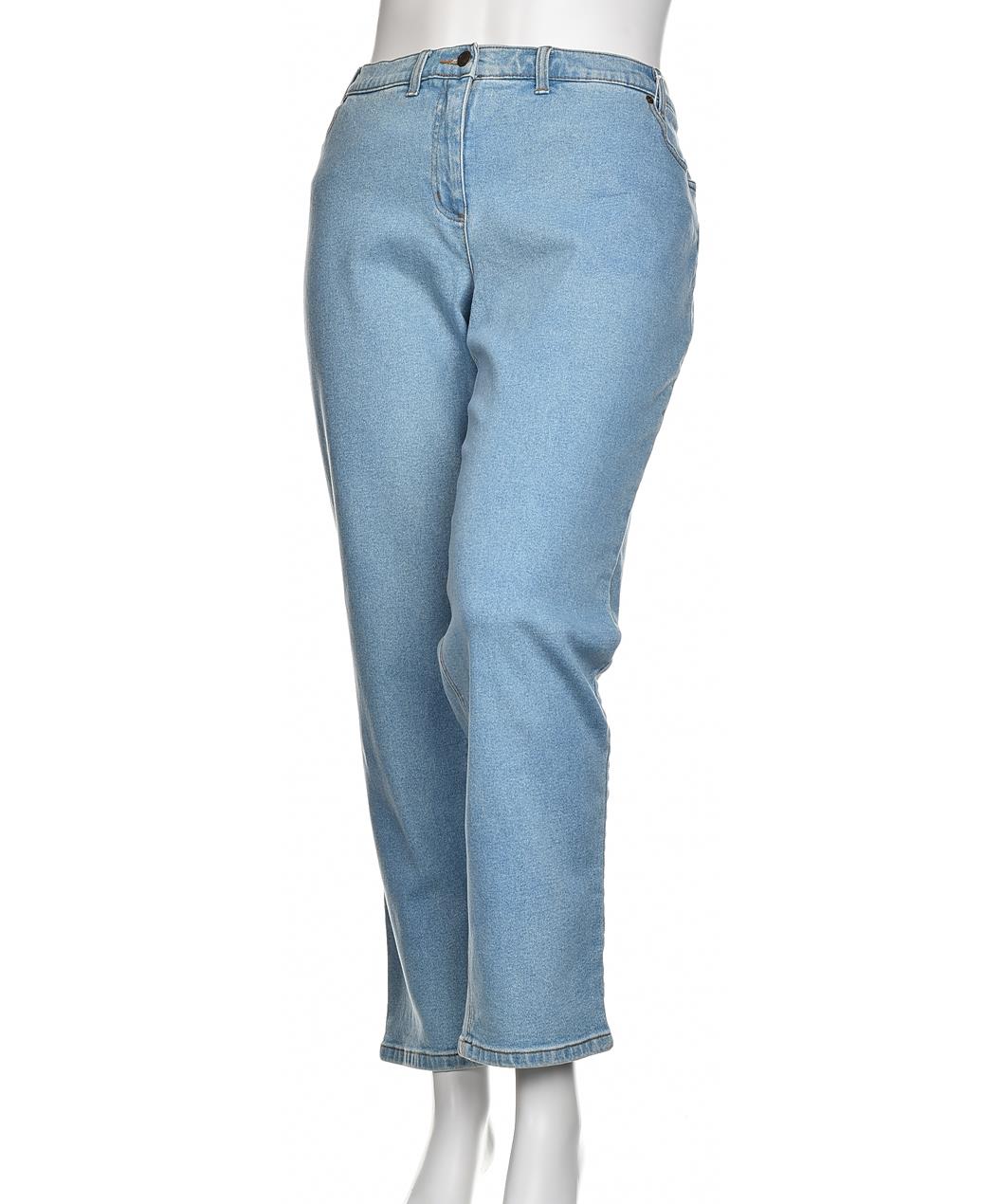 Класически дамски дънки от 100% памук. Светлосин цвят, висок ханш, права кройка и удобна талия с джобове и закопчаване на копче и цип. Мек и дишащ плат за ежедневно носене. Лесни за пране и стилни.