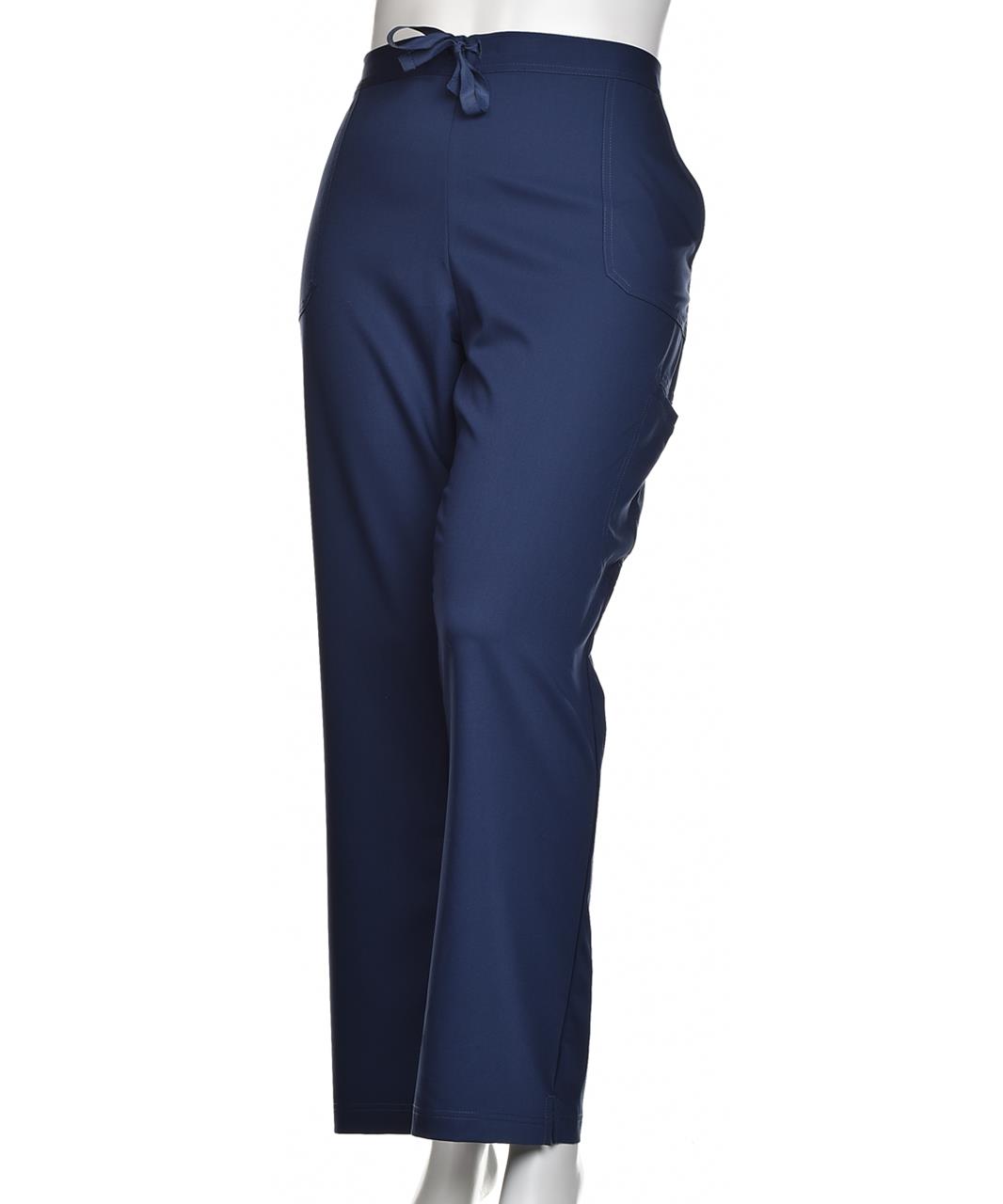 Елегантен дамски панталон от вискоза в тъмносин цвят. Прав силует, висока талия с регулираща връзка, странични джобове и удобна подплата. Мек, дишащ материал за целодневен комфорт. Удобна за всеки ден.