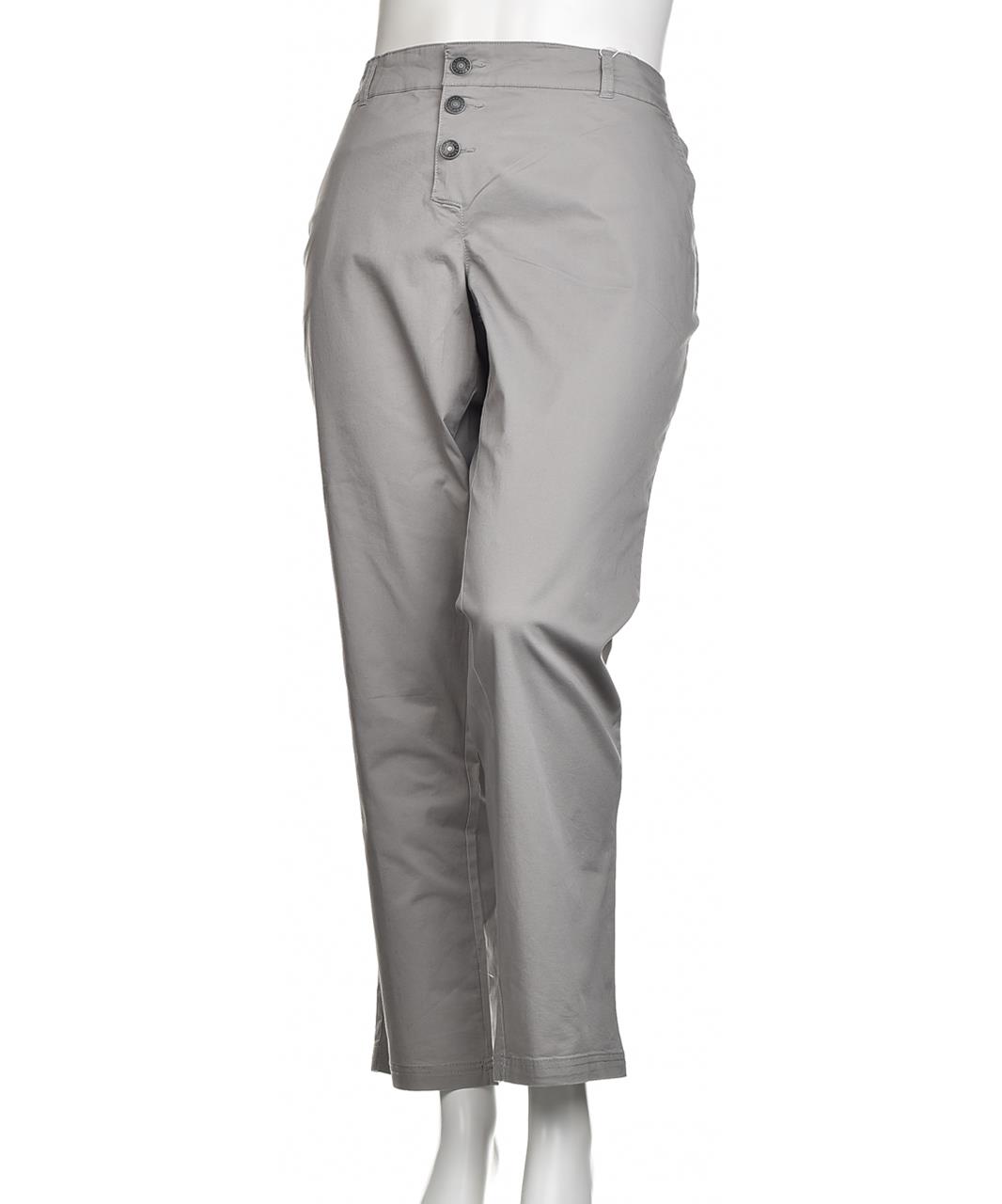 Елегантен дамски памучен панталон в сив цвят, права кройка, висока талия с три декоративни копчета, удобна дължина до глезена. Мек, дишащ плат за ежедневен и офис стил. Стилна комбинация за всеки ден.