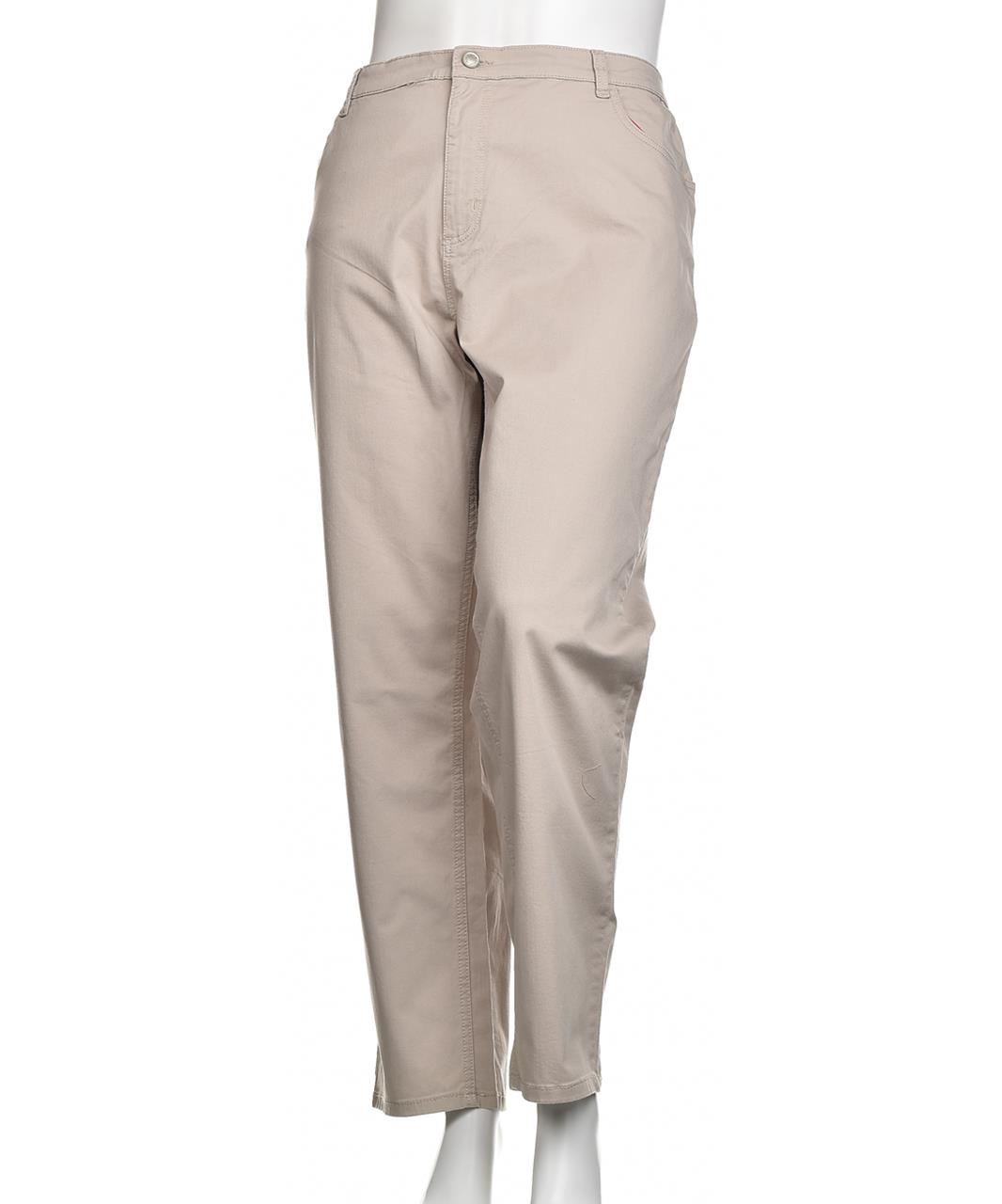 Дамски памучен панталон в неутрален бежов нюанс. Прав силует, удобна талия с копче и цип, практични предни джобове. Мек, дишащ плат за ежедневен комфорт и лесна поддръжка. Подходящи за офис и море.