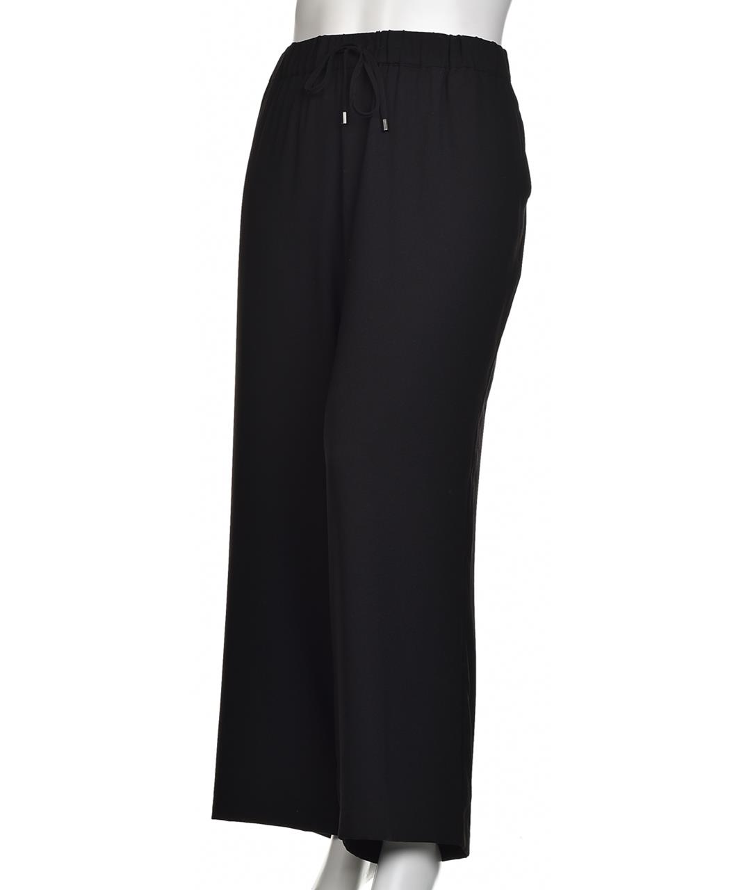Елегантен дамски панталон в черно с широк крачол и висока талия. Ластична талия с връзки за перфектно прилягане. Мек драпиращ плат за комфорт и свободно движение. Подходящи за офиса и свободното време