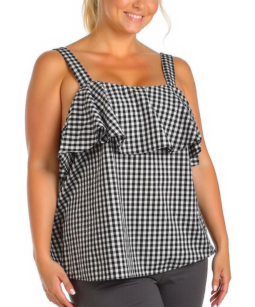 Дамският топ е изработен от висококачествен памук с класически черно-бял кариран десен. Декорацията с волани добавя женственост и стил. Подходящ за ежедневие или неформални събития.