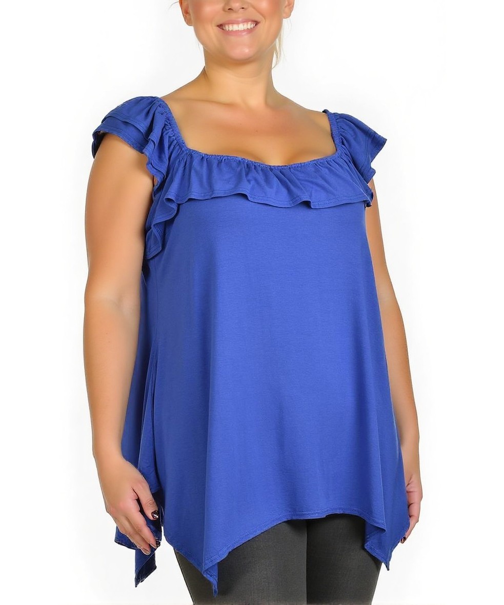 Дамски топ от вискоза в наситен син цвят. Снабден с къдри на деколтето и ръкавите, осигуряващ стил и комфорт. Свободна кройка, подходящ за ежедневието или специални поводи. Материята е мека и дишаща.