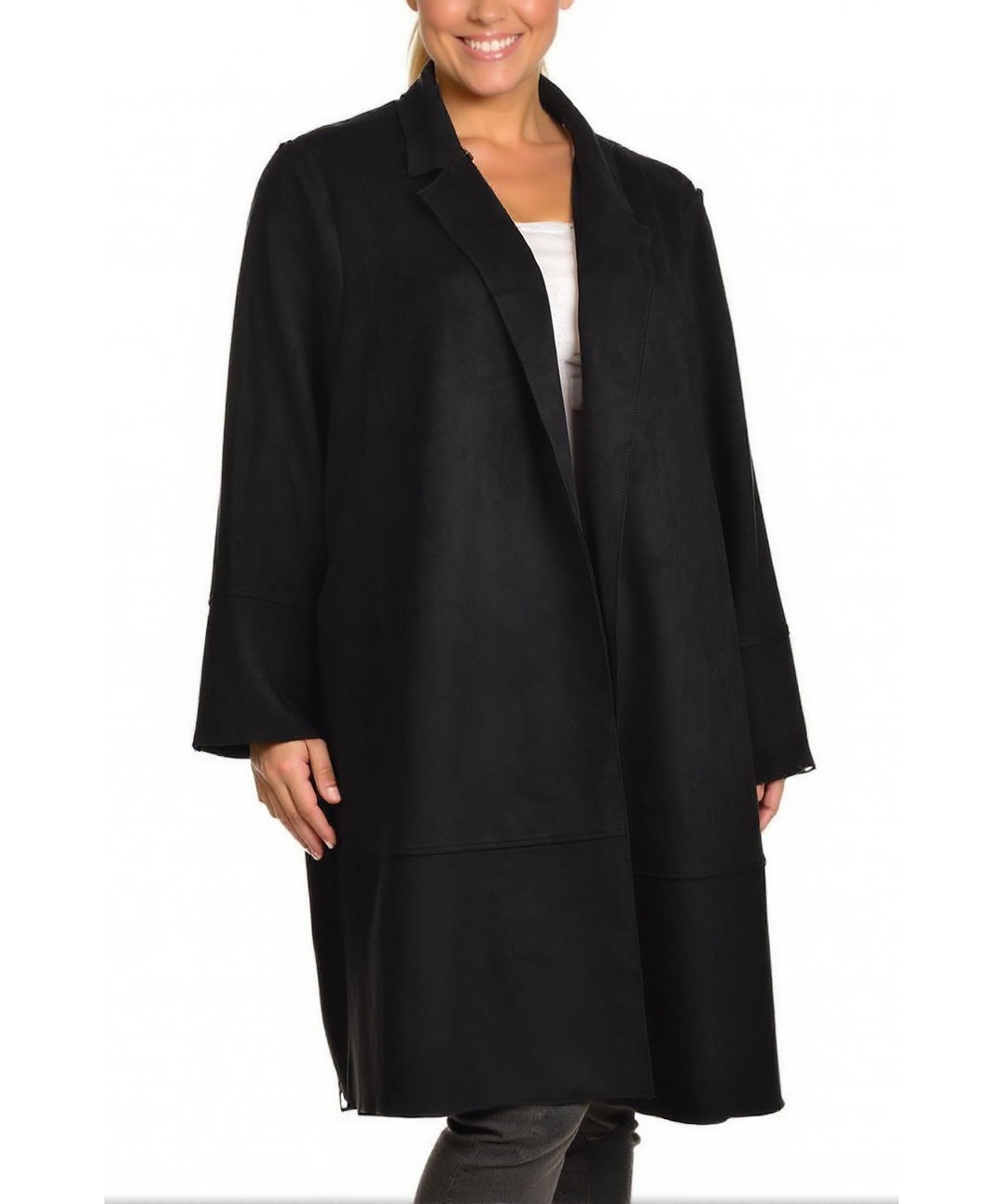 Елегантно дамско манто в наситено черно, подходящо за есенно-пролетен сезон. Свободен, прав силует с класическо ревере, дълги ръкави и фини шевове. Стилно, практично и универсално. Практичен и стилен.